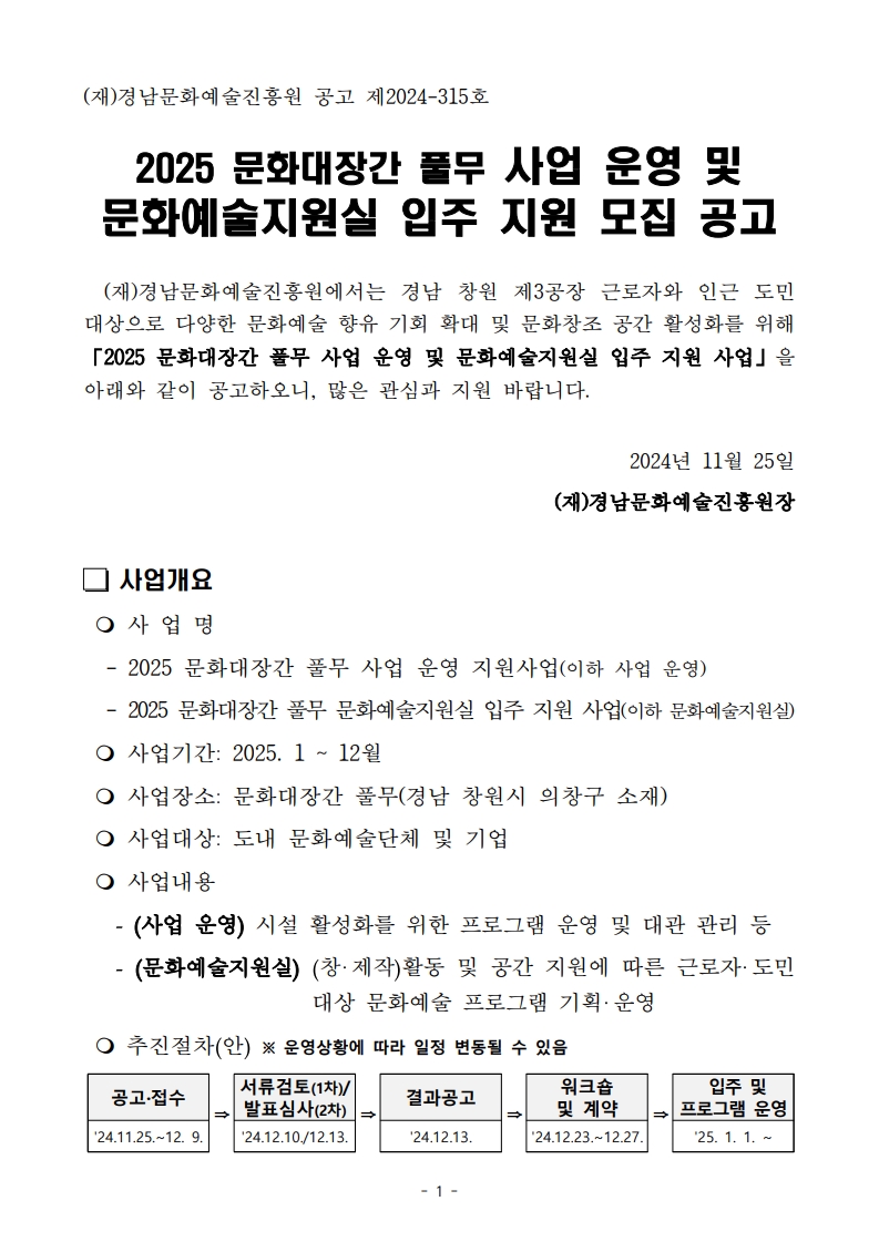 [경남문화예술진흥원] 2025 문화대장간 풀무 사업 운영 및 문화예술실 입주 지원 사업 공모
