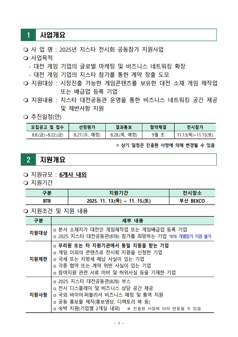 [대전정보문화산업진흥원] 2025년 지스타 전시회 대전공동관(BTB) 참가기업 모집공고