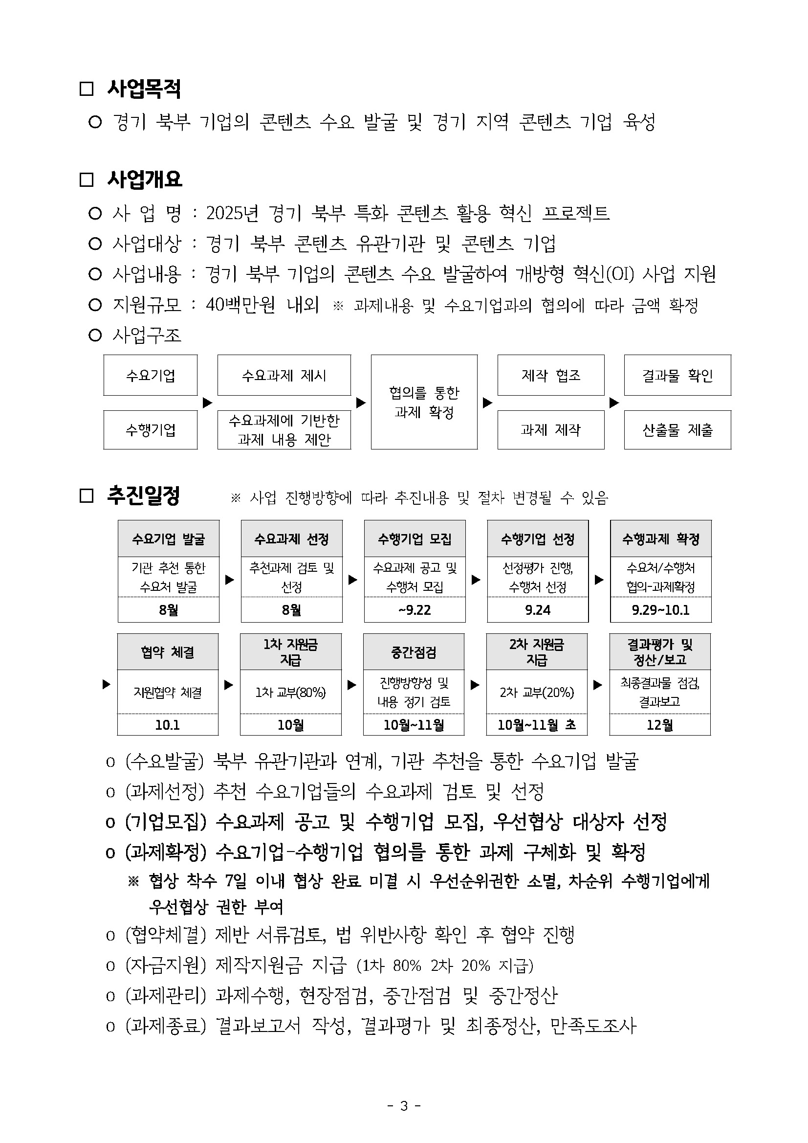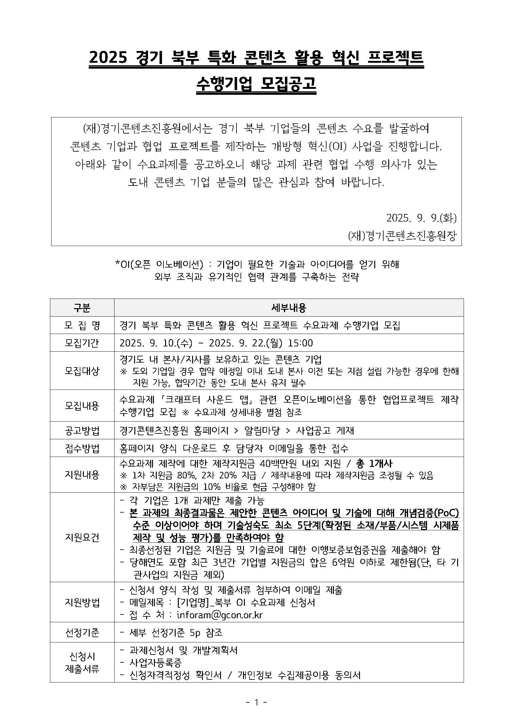 [경기콘텐츠진흥원] 2025 경기 북부 특화 콘텐츠 활용 혁신 프로젝트 수행기업 모집 공고