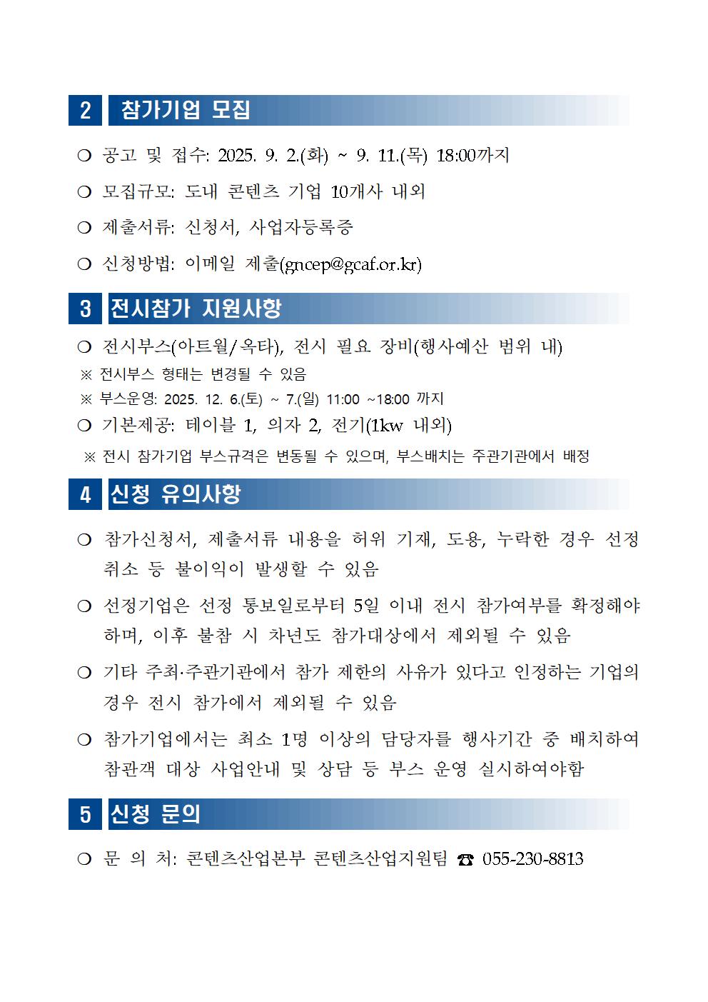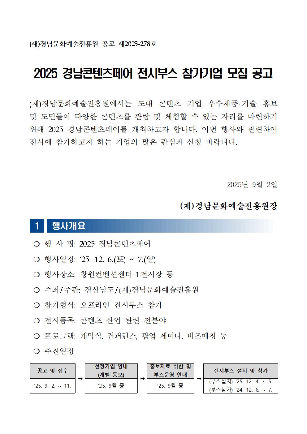 [경남문화예술진흥원] 2025 경남콘텐츠페어 전시부스 참가기업 모집 공고