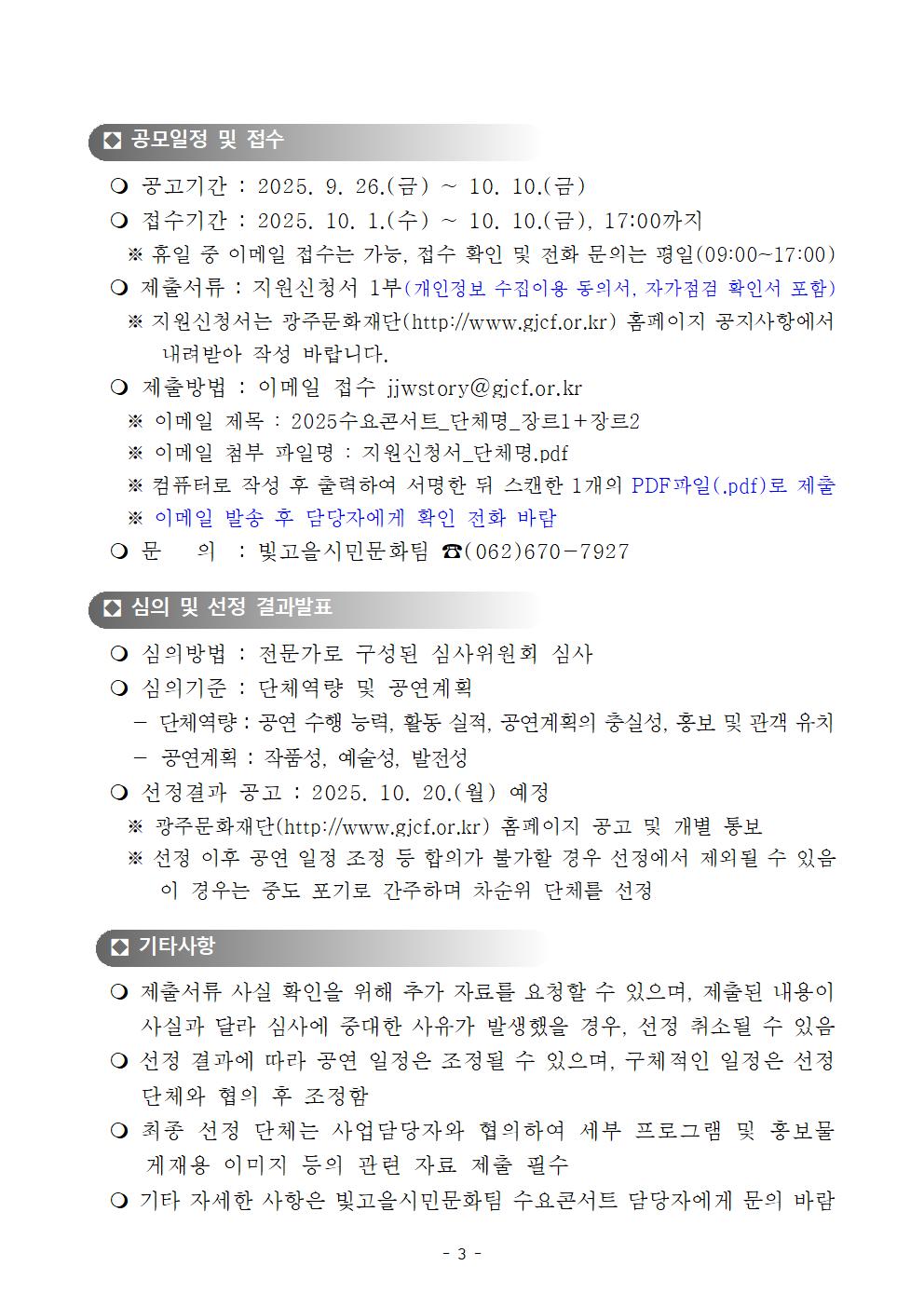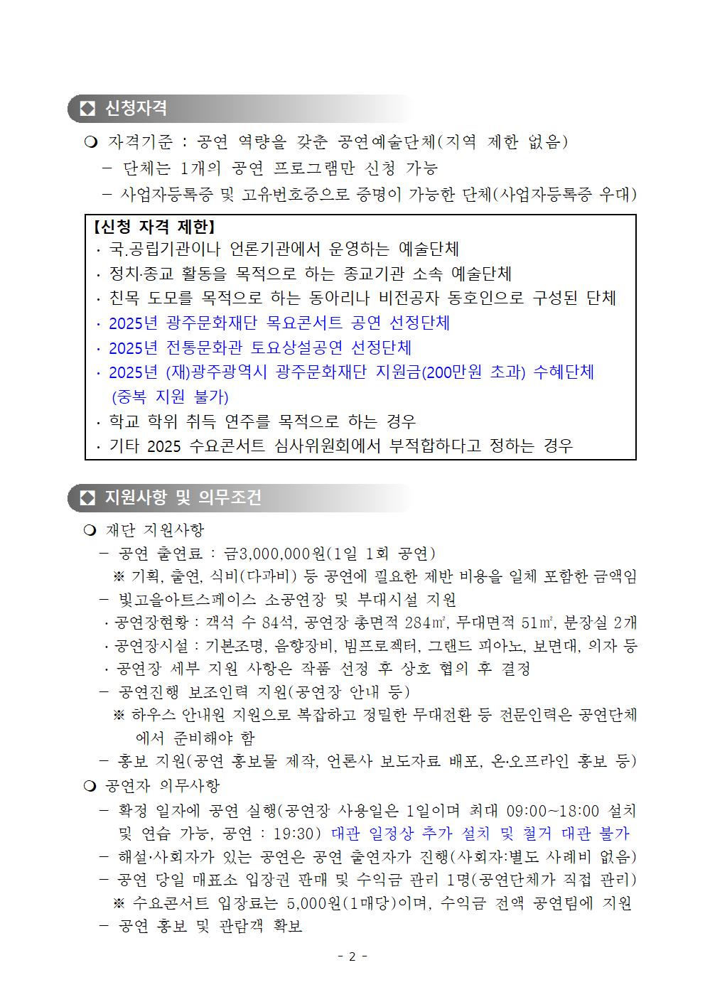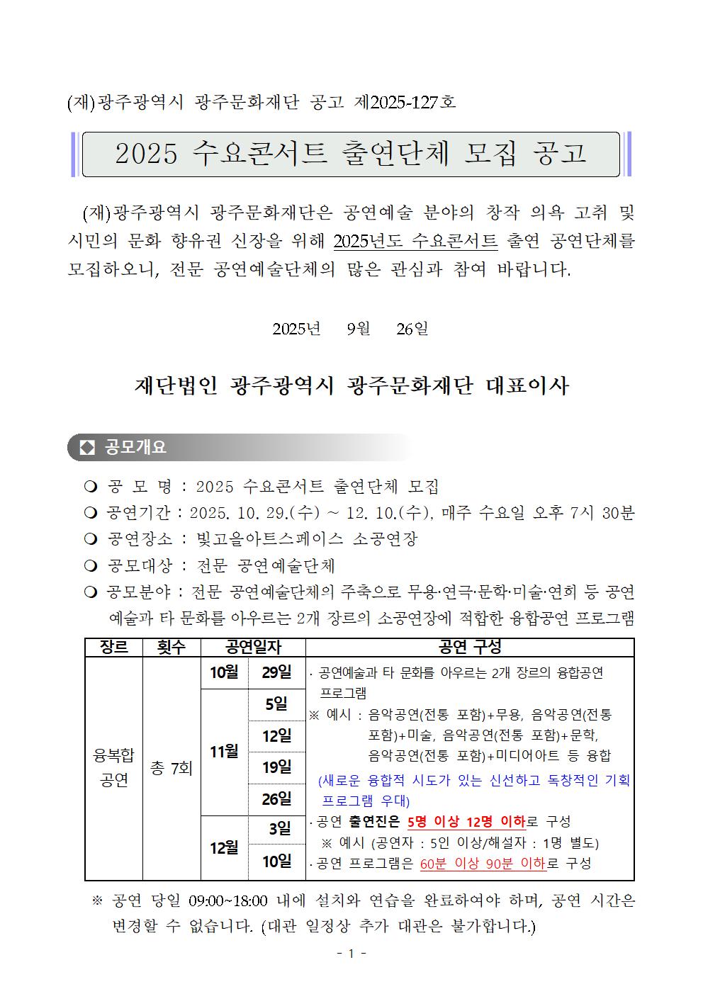 [광주문화재단] 2025 수요콘서트 출연단체 모집 공고