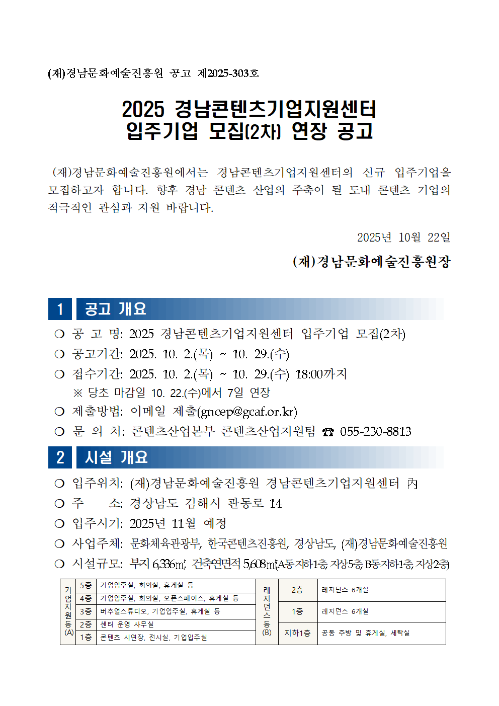 [경남문화예술진흥원] 2025 경남콘텐츠기업지원센터 입주기업 모집(2차) 연장 공고