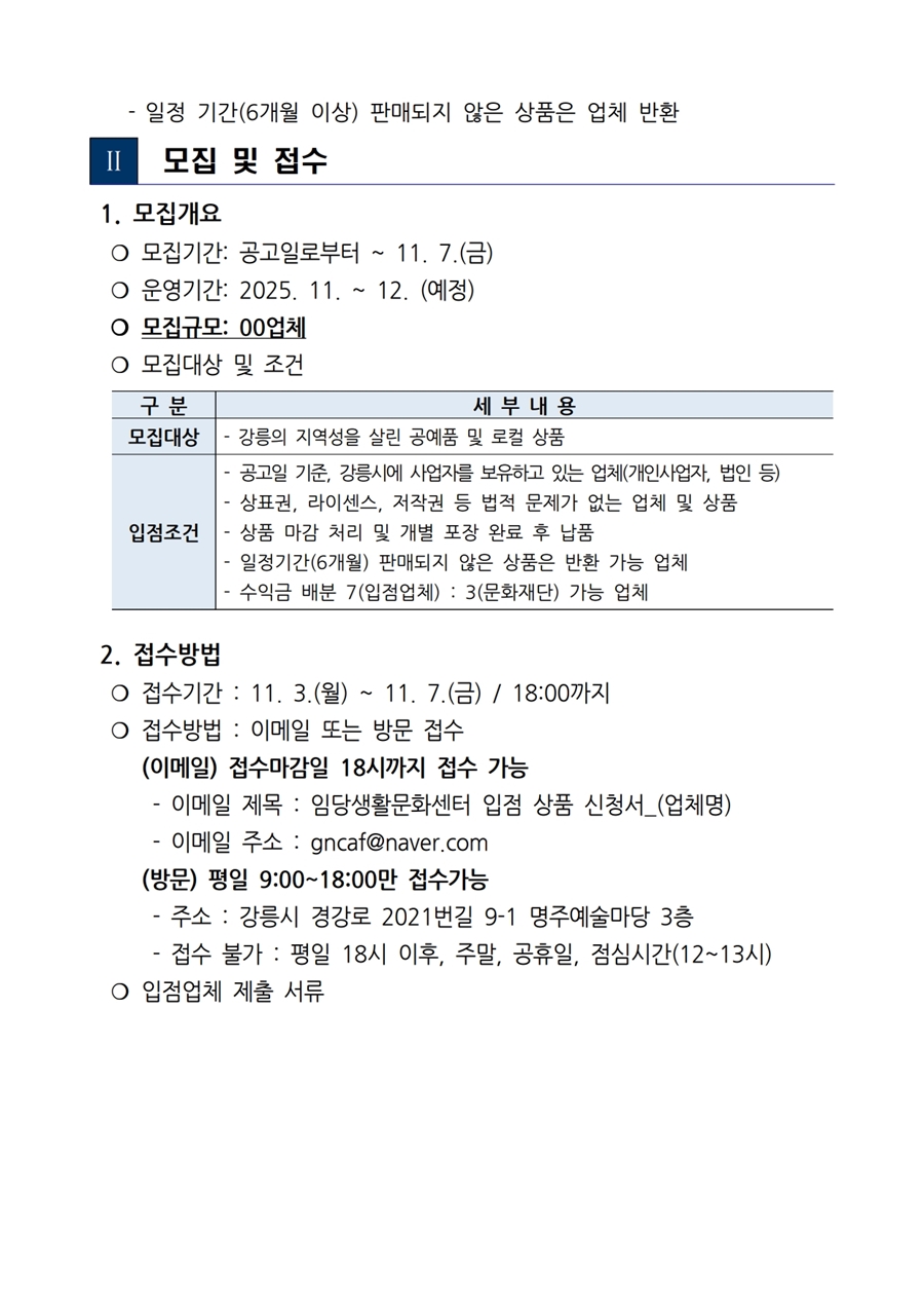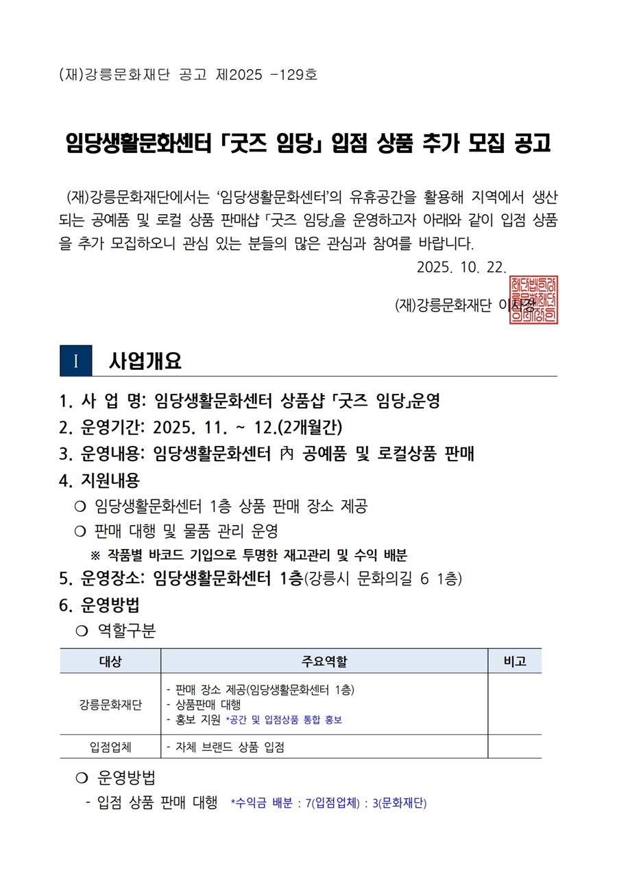 [강릉문화재단] [모집공고]임당생활문화센터 입점업체 추가모집공고(~11.7)
