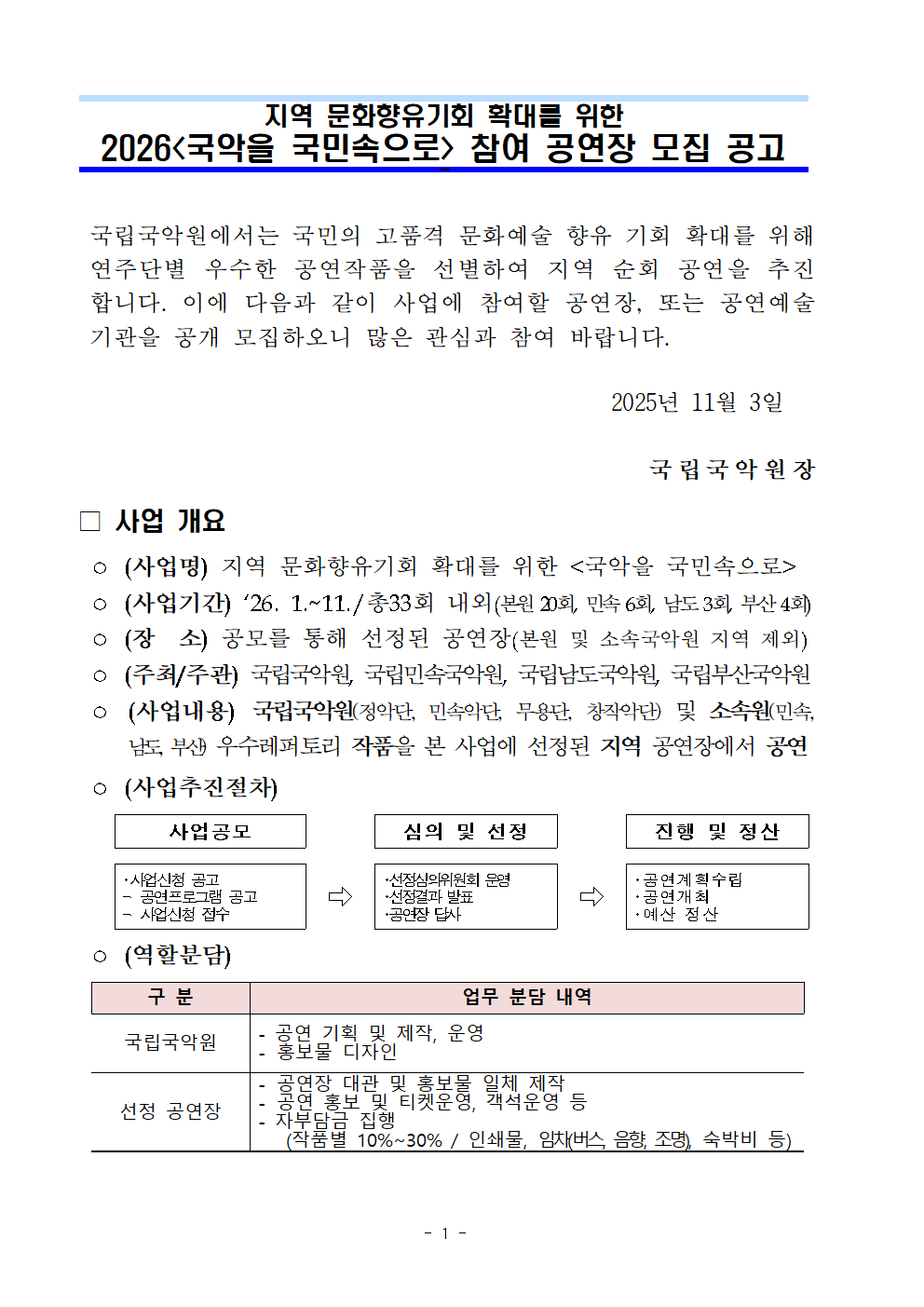 20251103120541_공고문_2026년 지역 문화향유기회 확대를 위한_국악을 국민속으로 모집.hwp