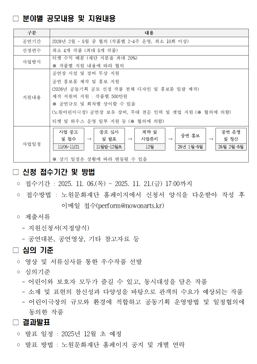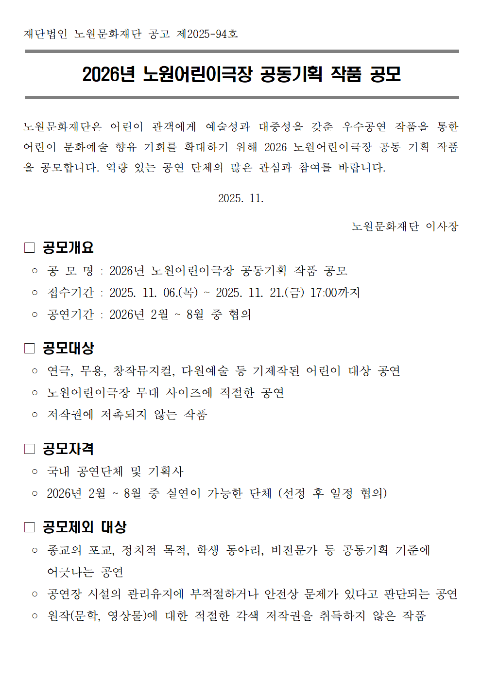 [노원문화재단] 2026 노원어린이극장 공동기획 작품 공모