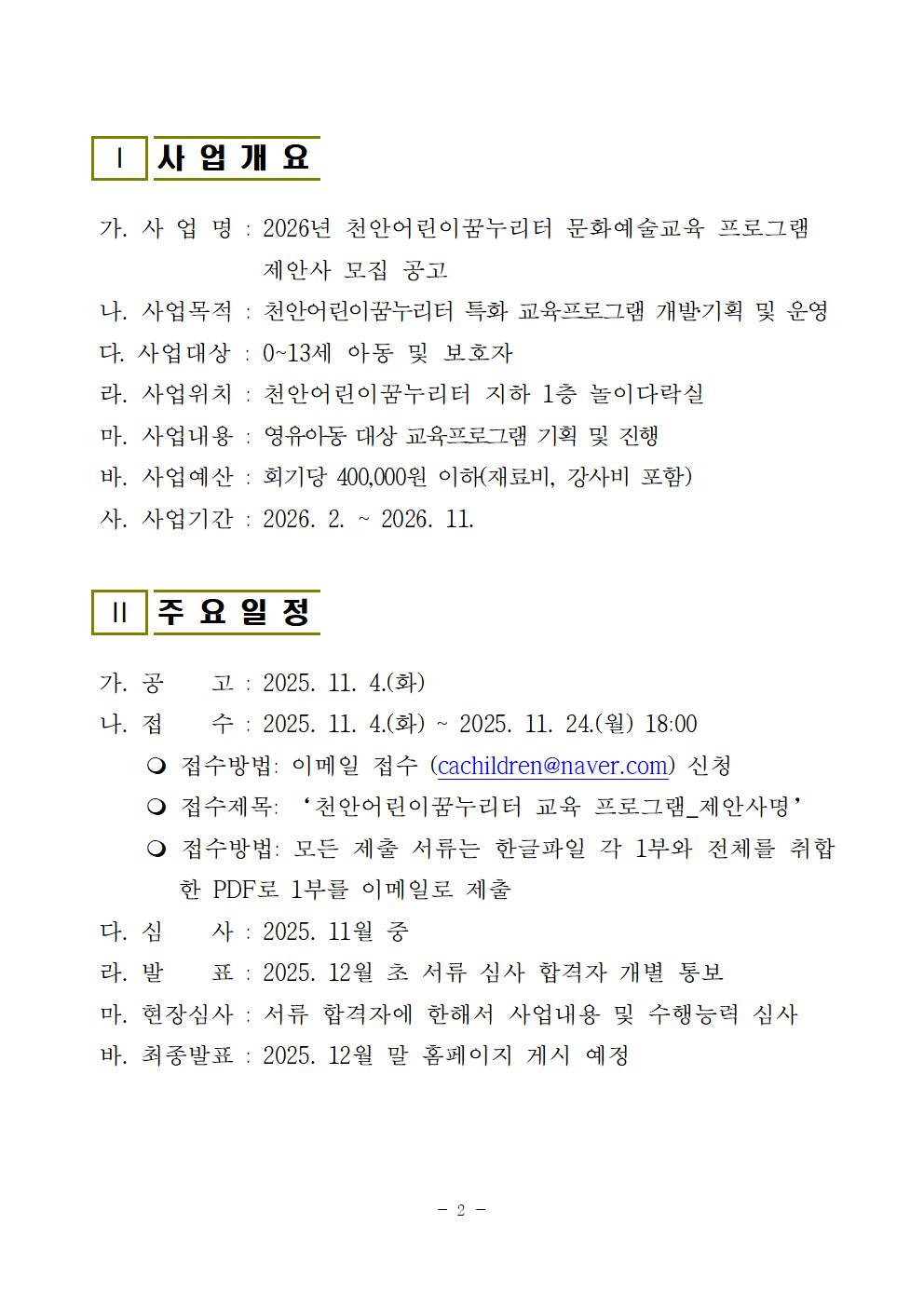 [천안어린이꿈누리터] 천안어린이꿈누리터 2026년도 문화예술교육 프로그램 제안사 공모