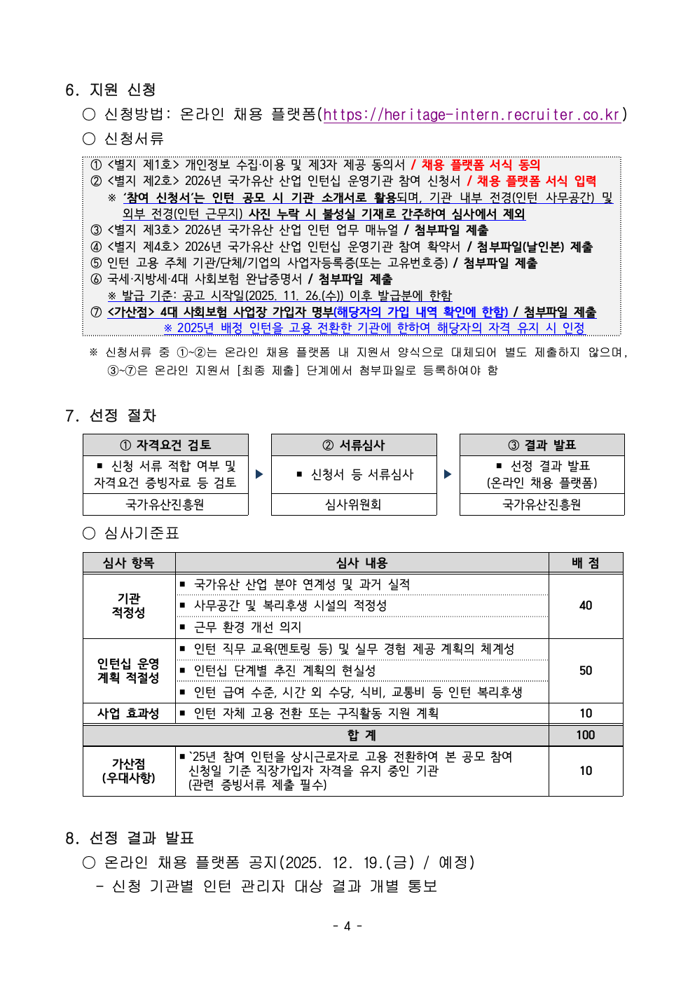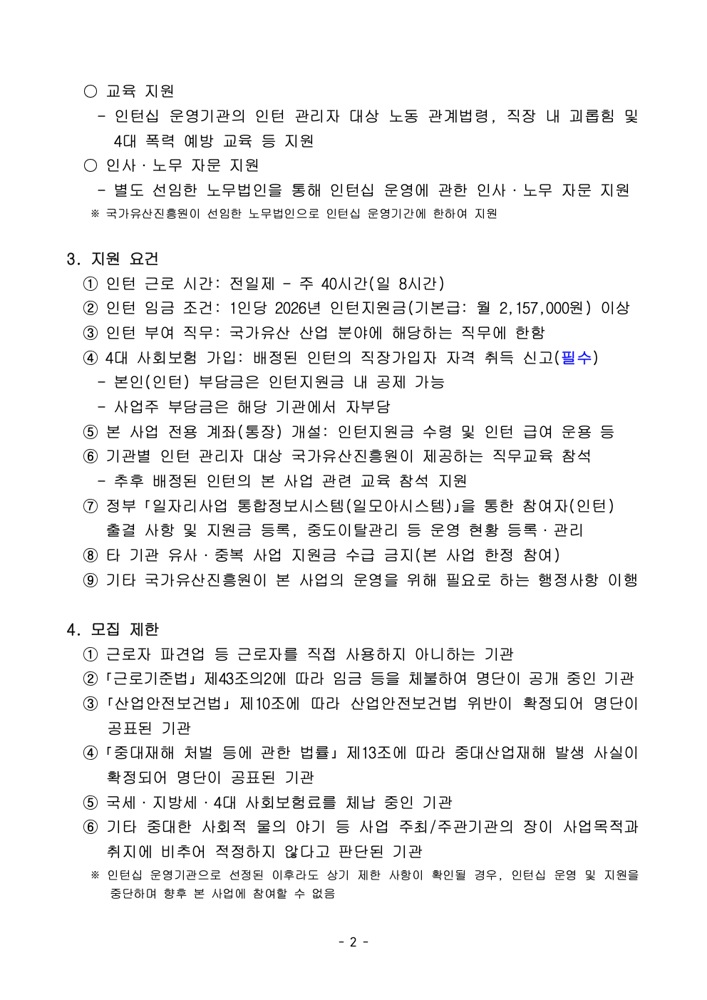 [국가유산진흥원] 2026년 국가유산 산업 인턴십 지원 사업 - 인턴십 운영기관 공개모집 공고