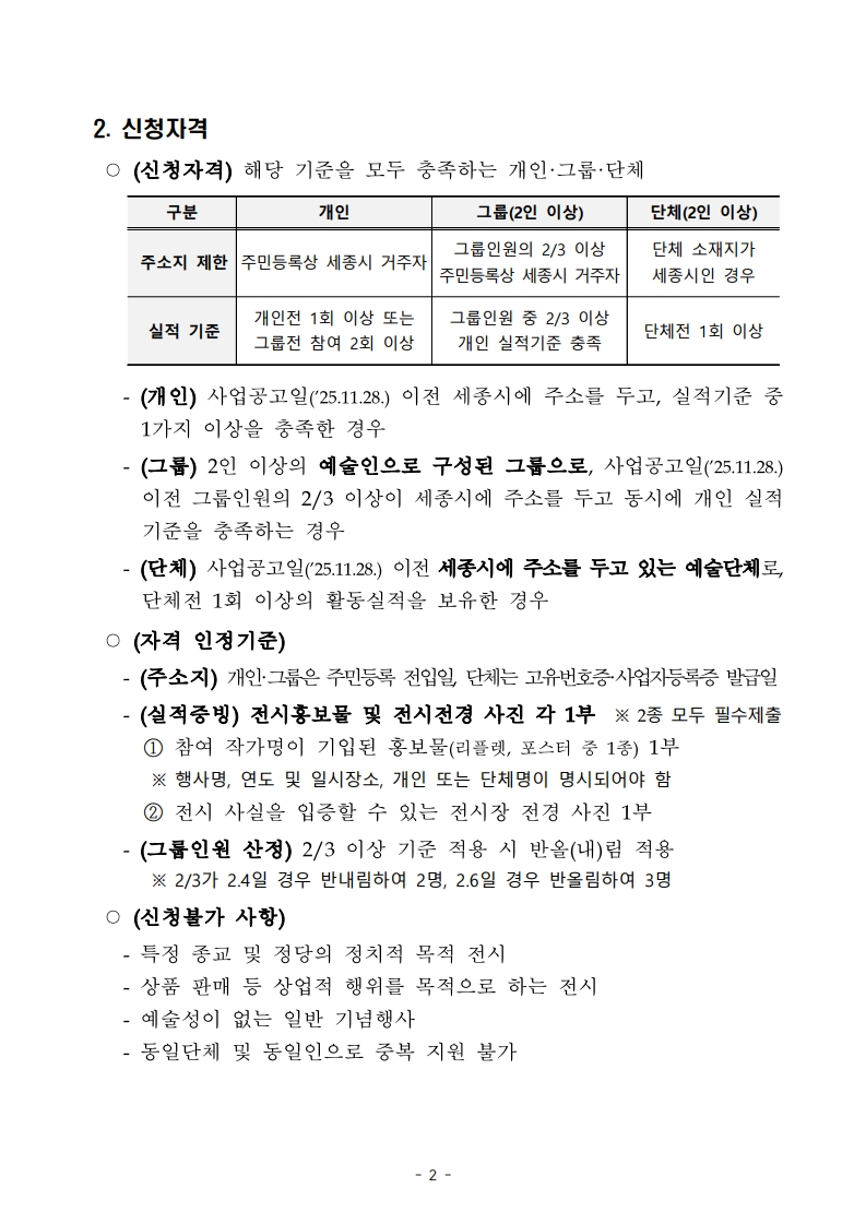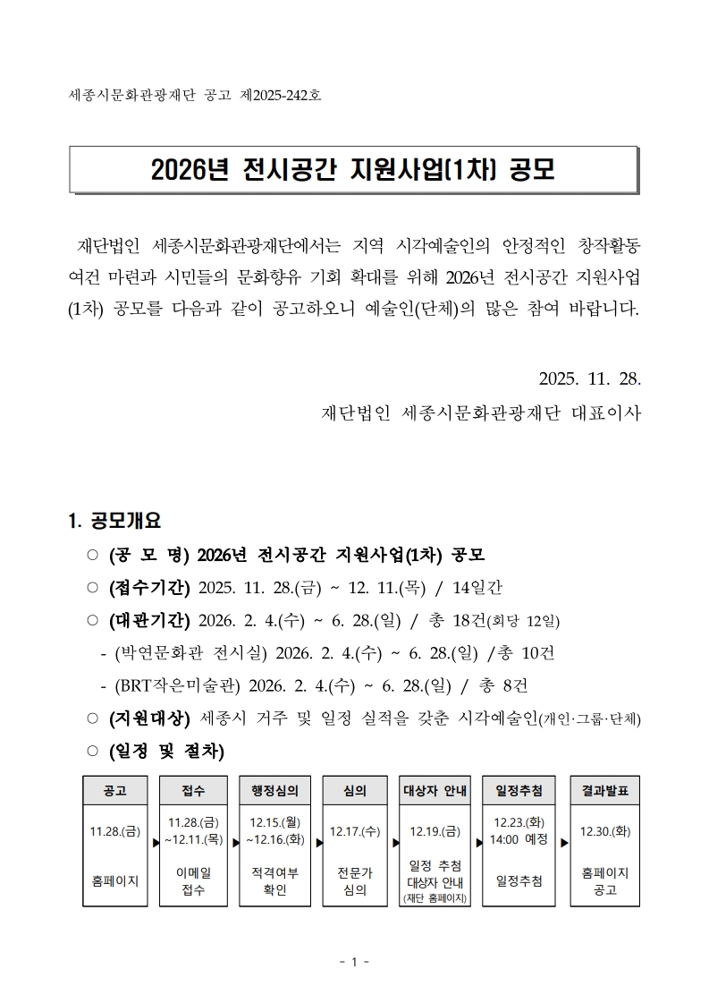 [세종시문화재단] 2026년 전시공간 지원사업(1차) 공모 공고