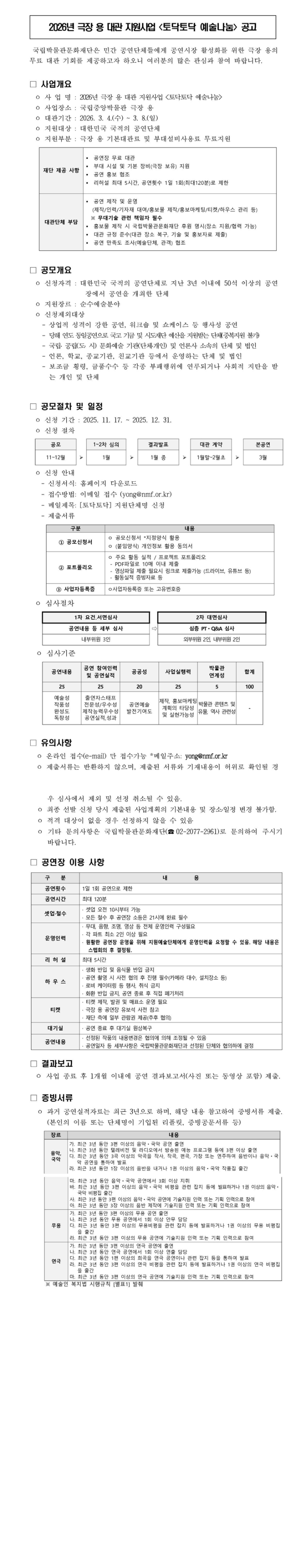 [국립박물관문화재단] 2026년 극장 용 대관 지원사업 공고
