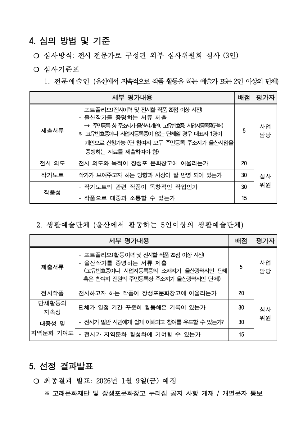 [고래문화재단] [장생포문화창고] 2026 울산작가 전시지원 공모