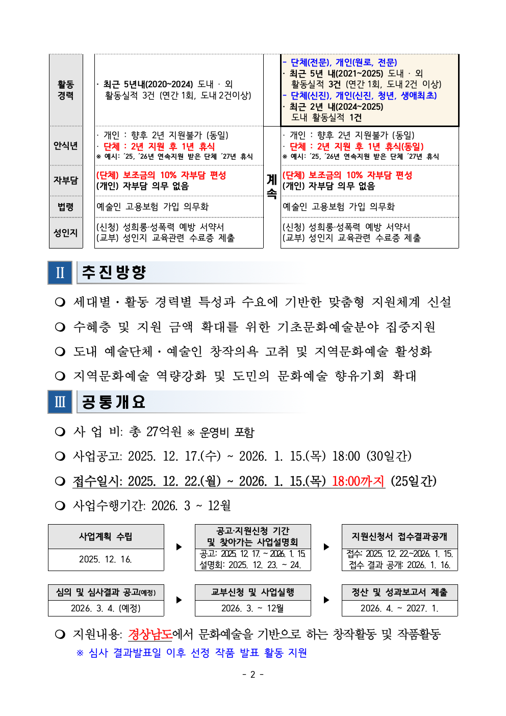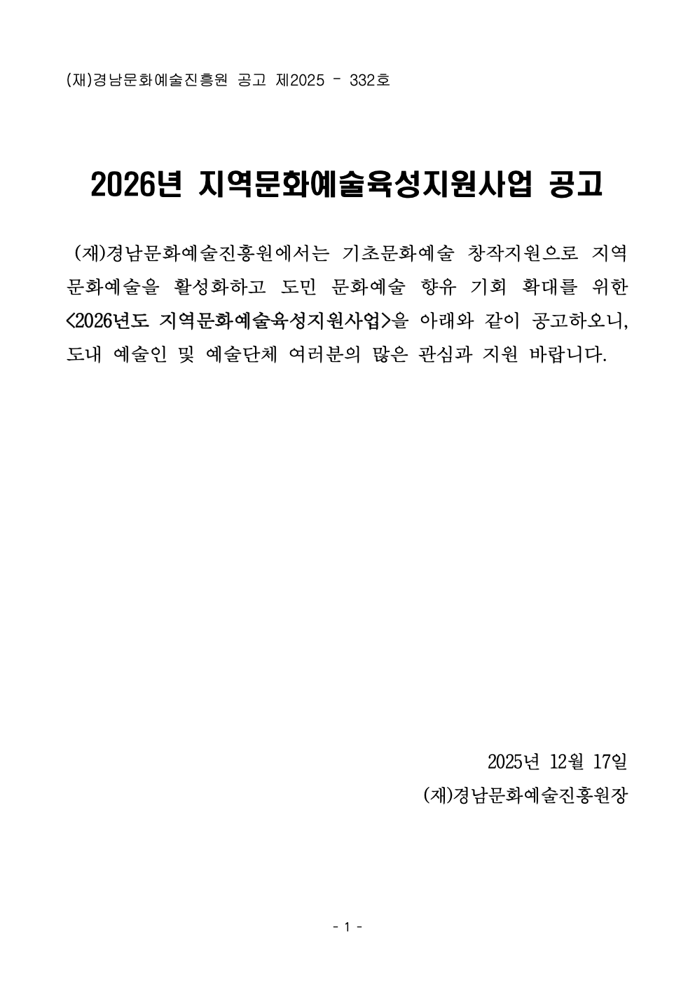 [경남문화예술진흥원] 2026 지역문화예술육성지원사업 공고