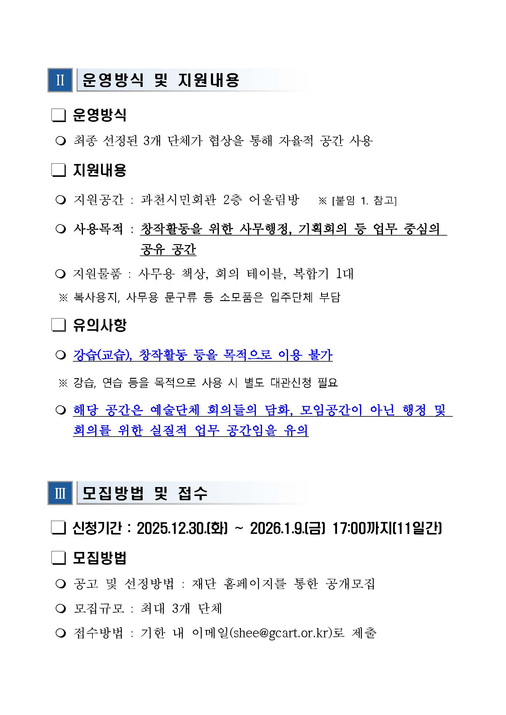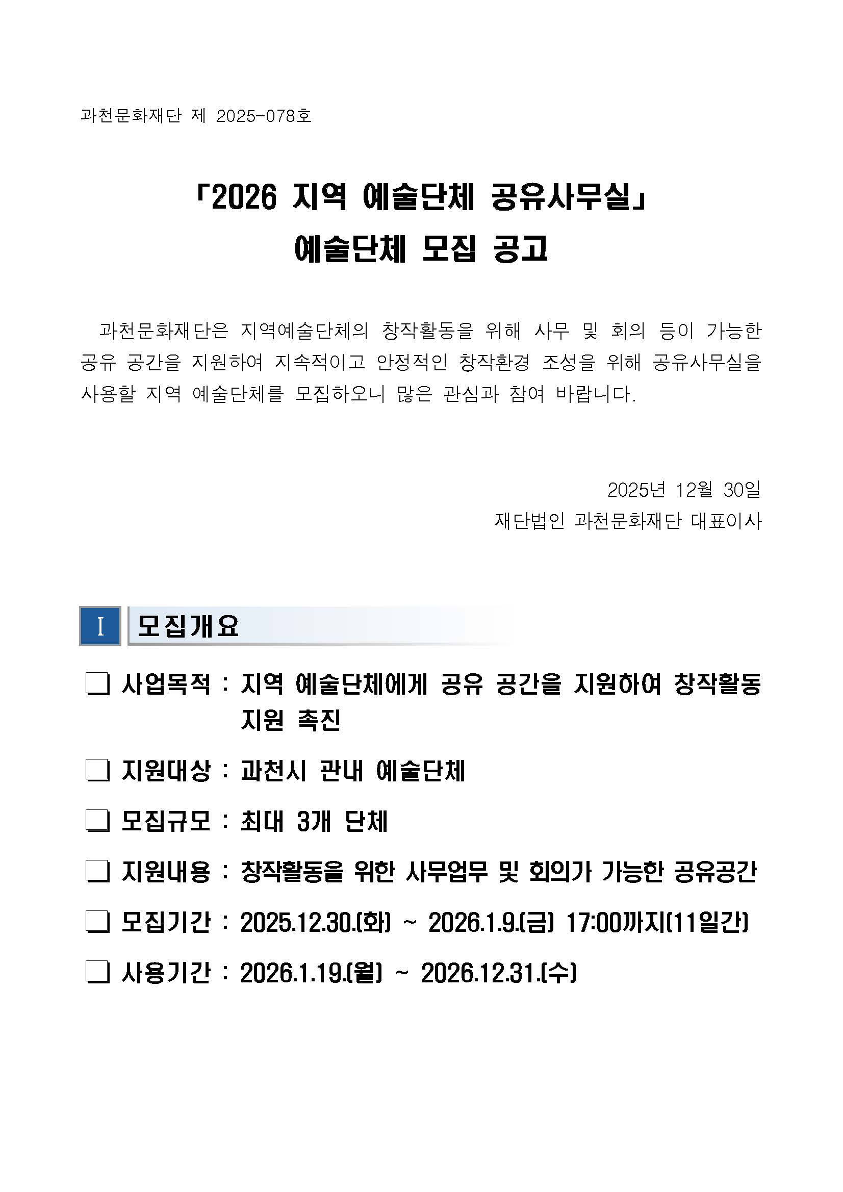 [과천문화재단] [2026 지역 예술단체 공유사무실] 예술단체 모집 공고
