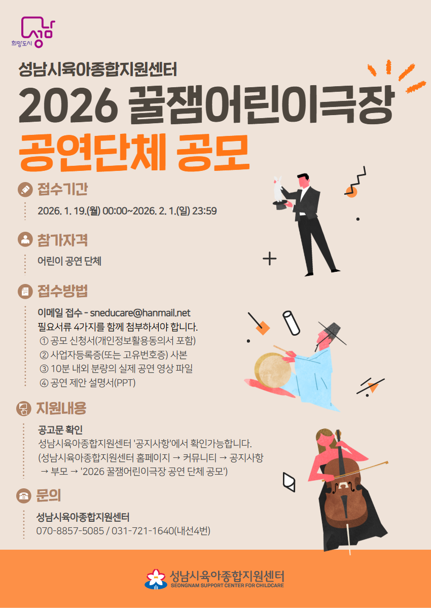 [성남시육아종합지원센터] 2026 꿀잼어린이극장 공연단체 공모
