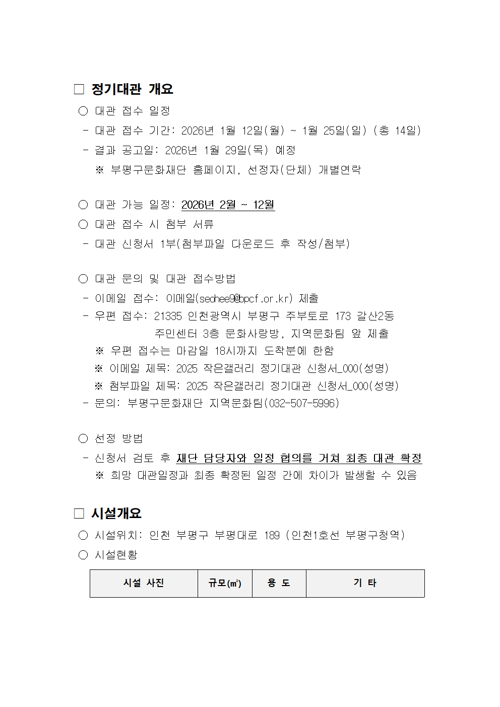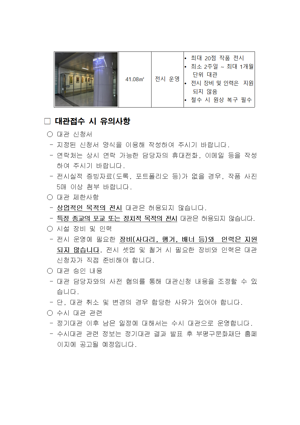 [부평구문화재단] 2026 지하철역사 문화공간 「작은갤러리」 무료대관 공고 (정기대관)