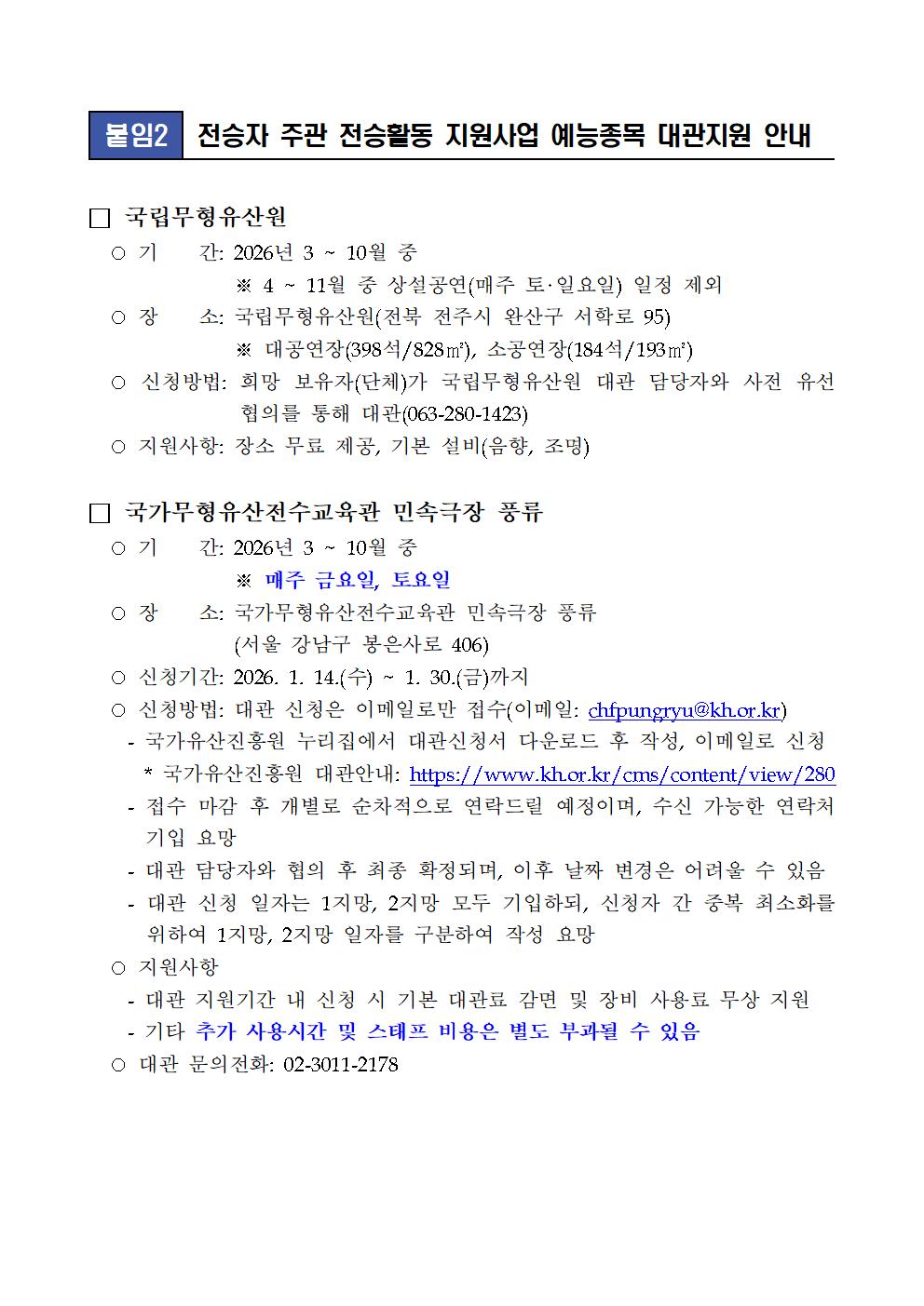 2026년 국가무형유산 공개행사 지원사업 안내