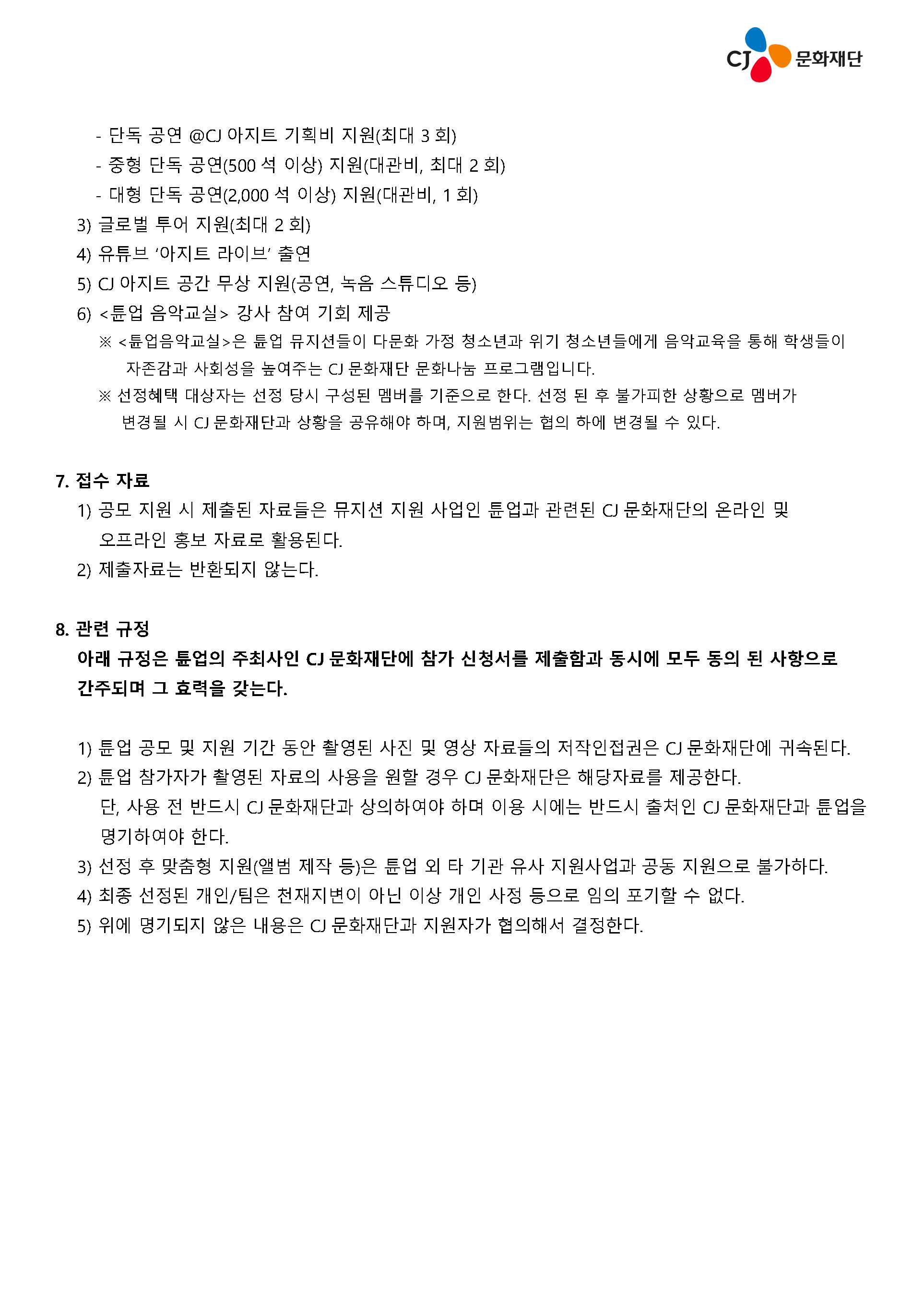 [CJ문화재단 ] 2026년도 튠업 27기 뮤지션 공모