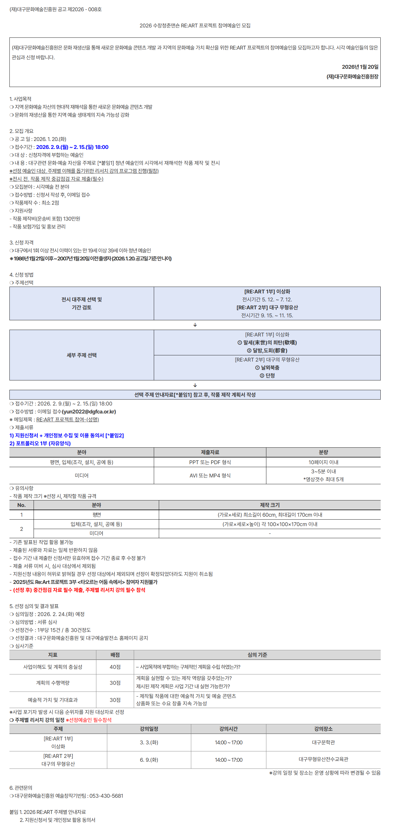 2026년도 대구예술발전소 레지던시 입주작가 모집 공고