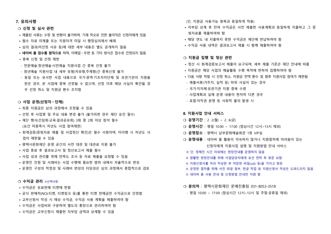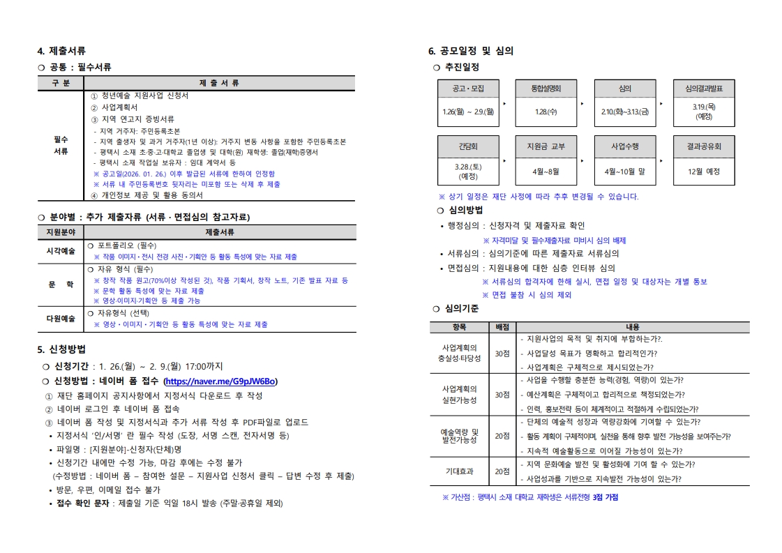 2026 평택시문화재단 시민예술 지원사업 공고