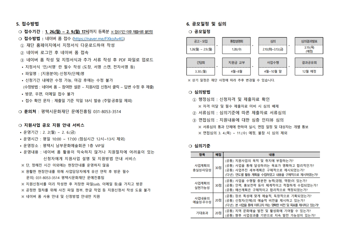 2026 평택시문화재단 시민예술 지원사업 공고