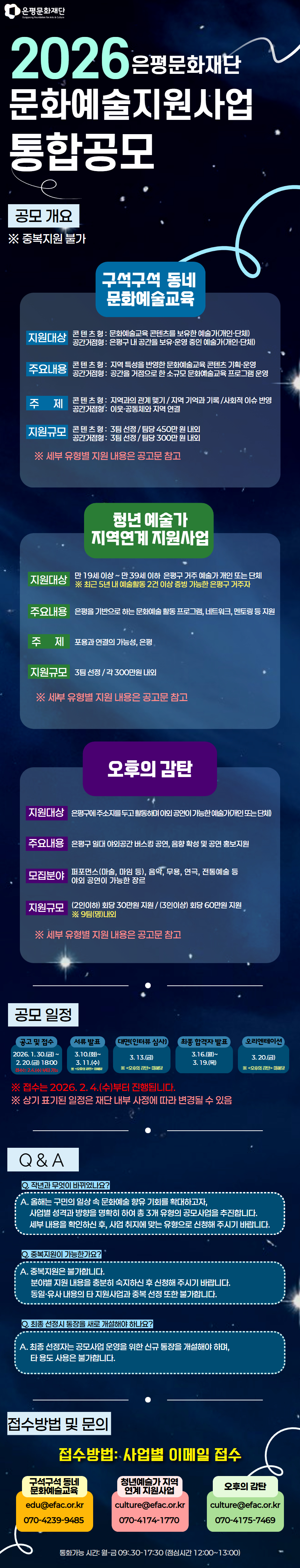 [은평문화재단] 【통합공모】2026 은평문화재단 문화예술지원사업(~2. 20. 18시)