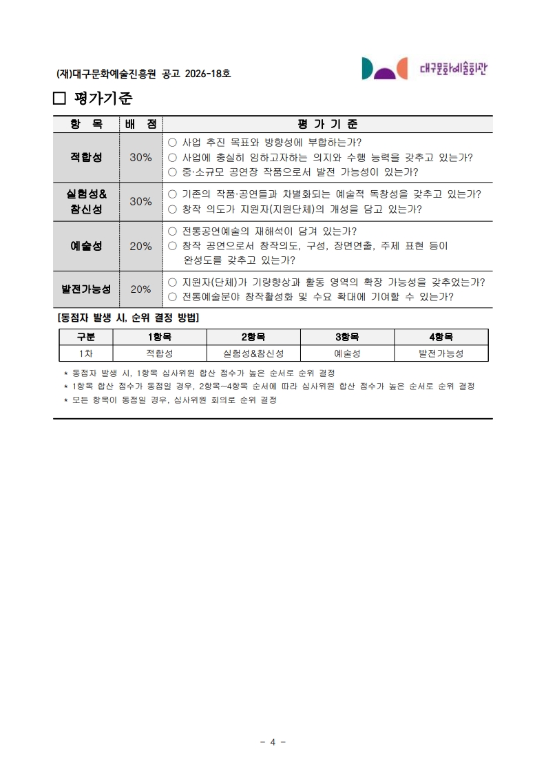 2026년도 대구문화예술지원사업 (구. 지역문화예술지원사업) 공모 공고