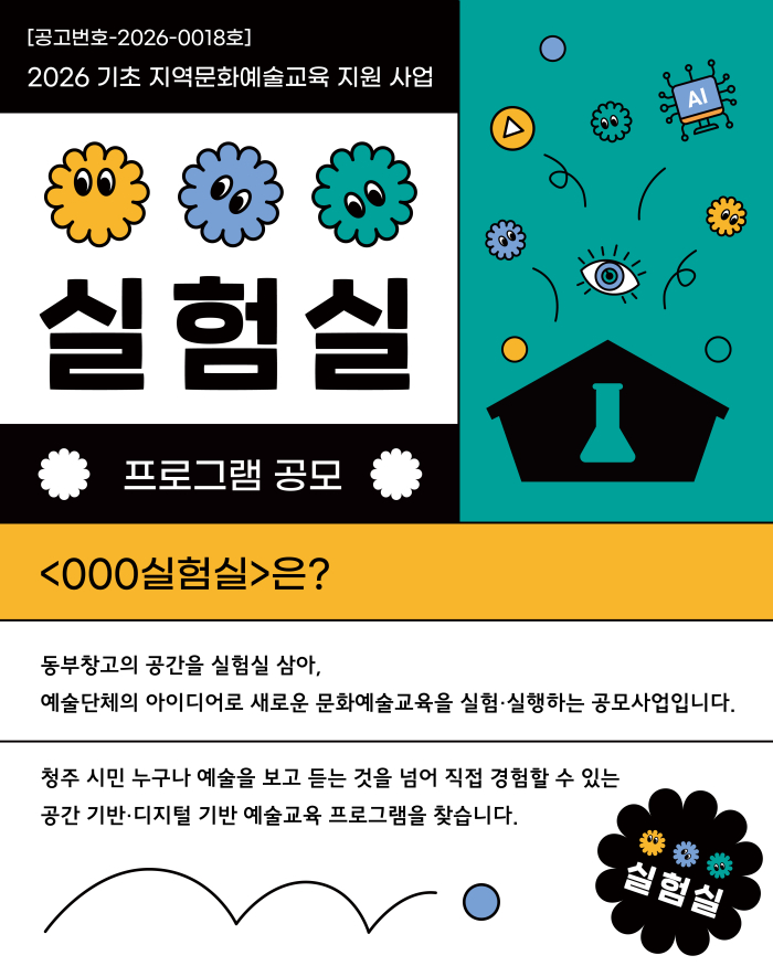 [청주시문화산업진흥재단] 2026년 기초 지역문화예술교육 지원 사업 000실험실 프로그램 운영 단체 공모