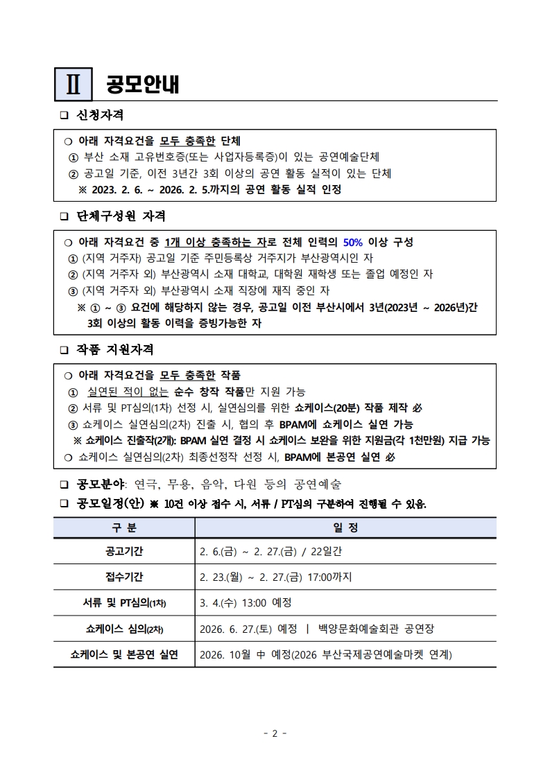 2026 부산국제공연예술제 <국제 교류공연 지원 사업> 참여 단체 공개모집...