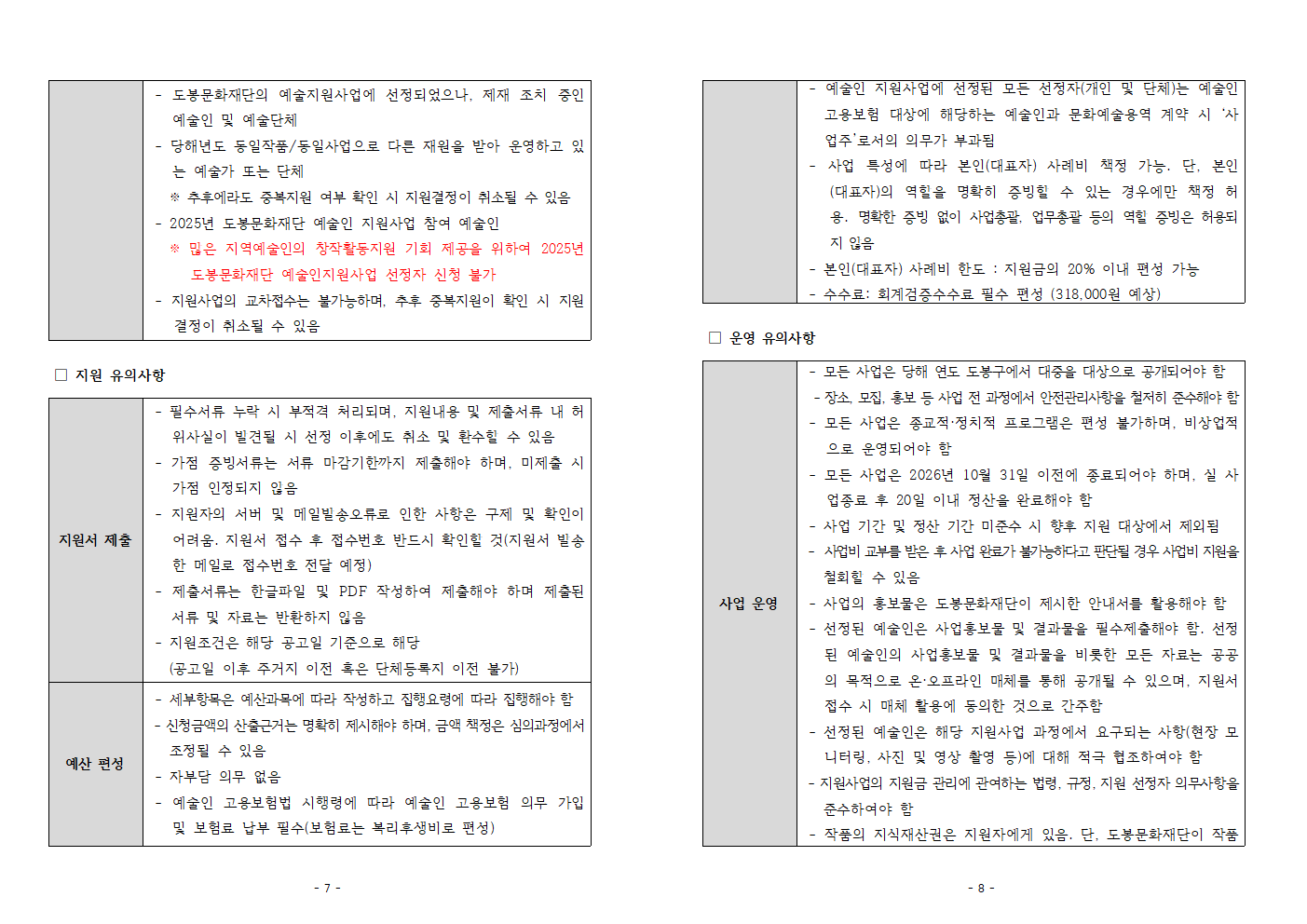 [도봉문화재단] [공고] 2026 도봉 예술인·단체 지원사업 공고