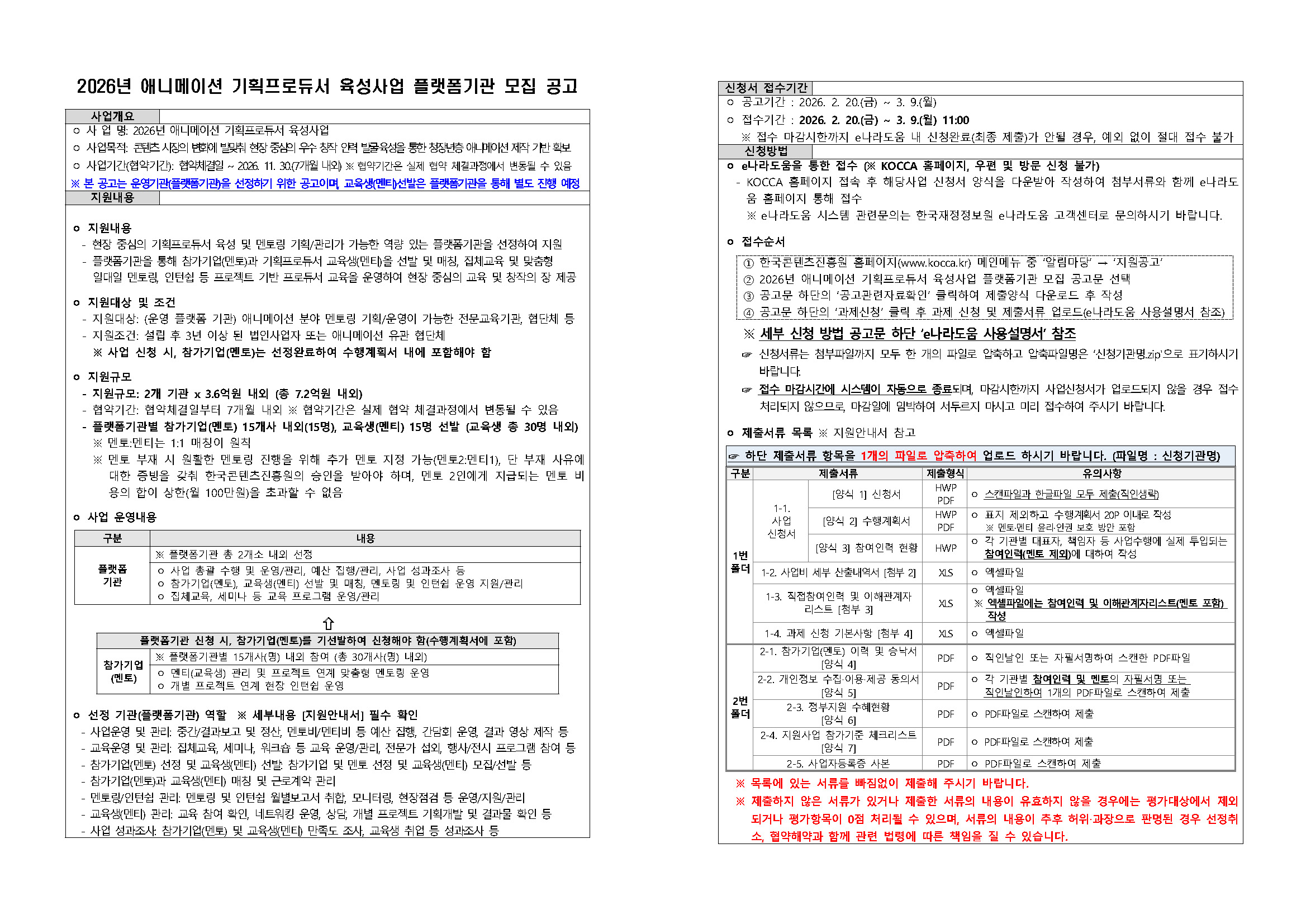 20260220101025_1. [공고문] 2026년 애니메이션 기획 프로듀서 육성사업 플랫폼기관 모집 공고.pdf