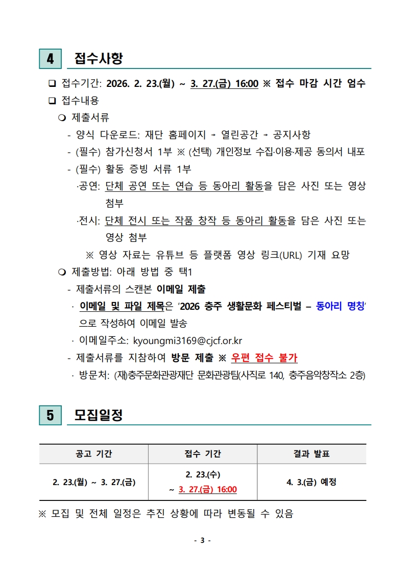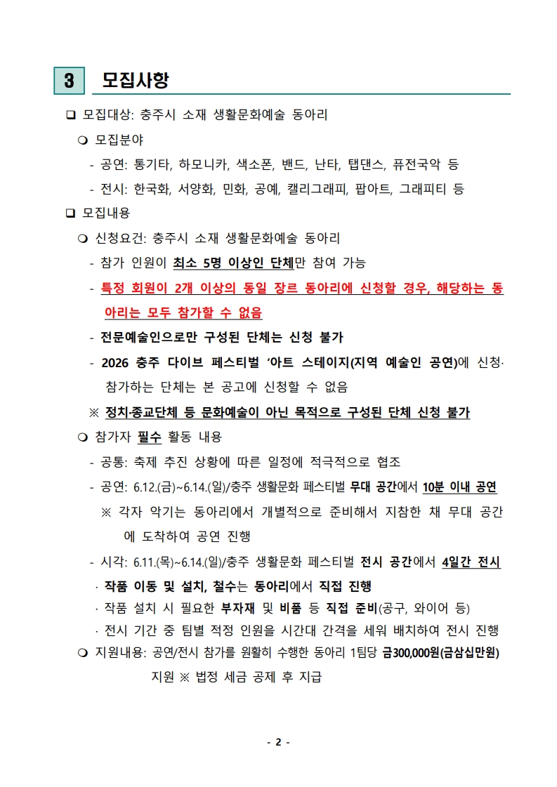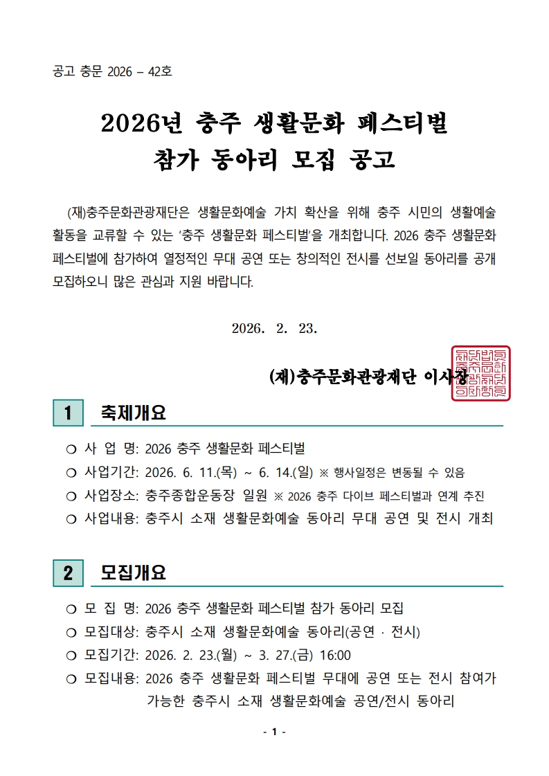 [충주중원문화재단] [알림] 2026년 충주 생활문화 페스티벌 참가 동아리 모집 공고