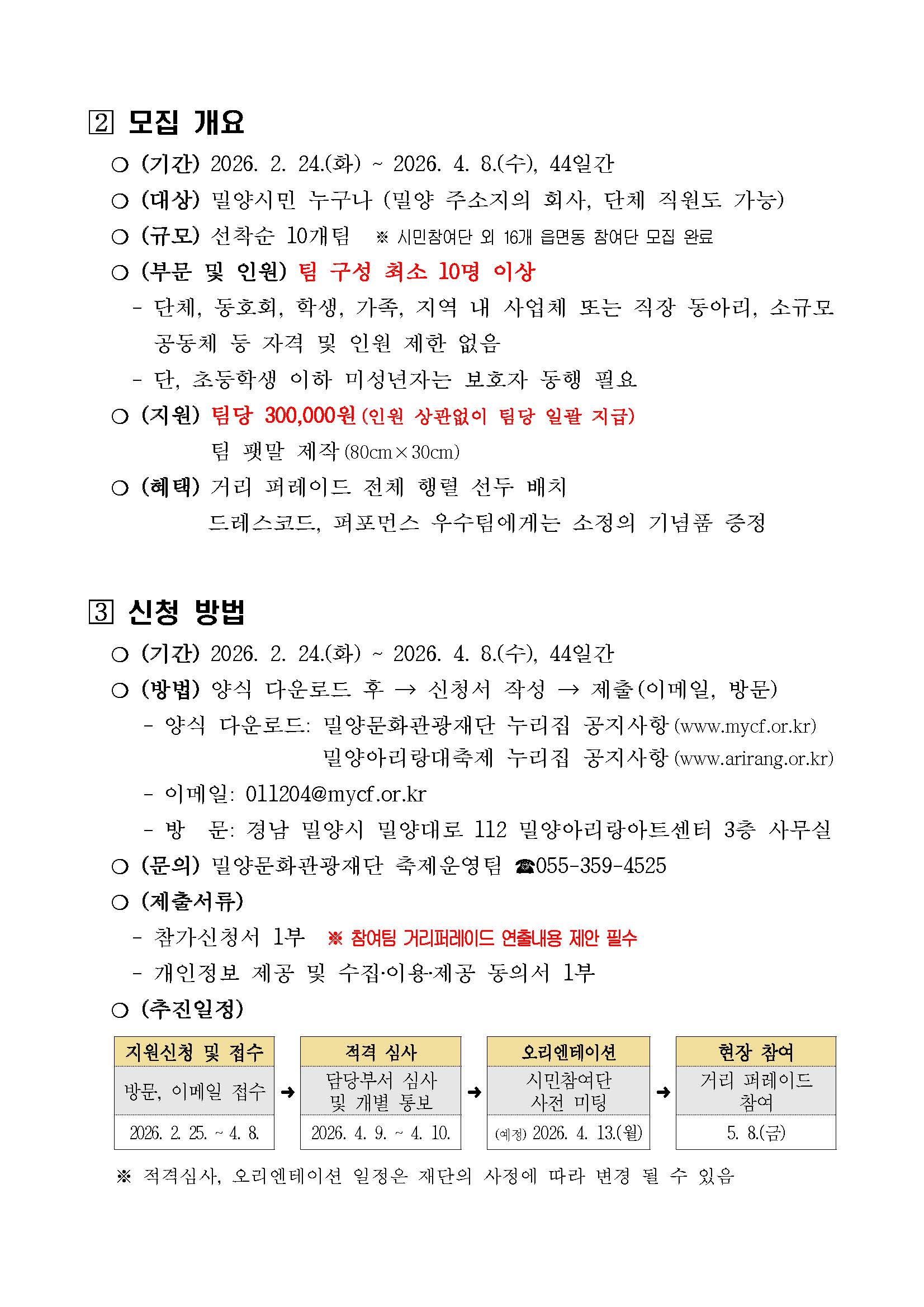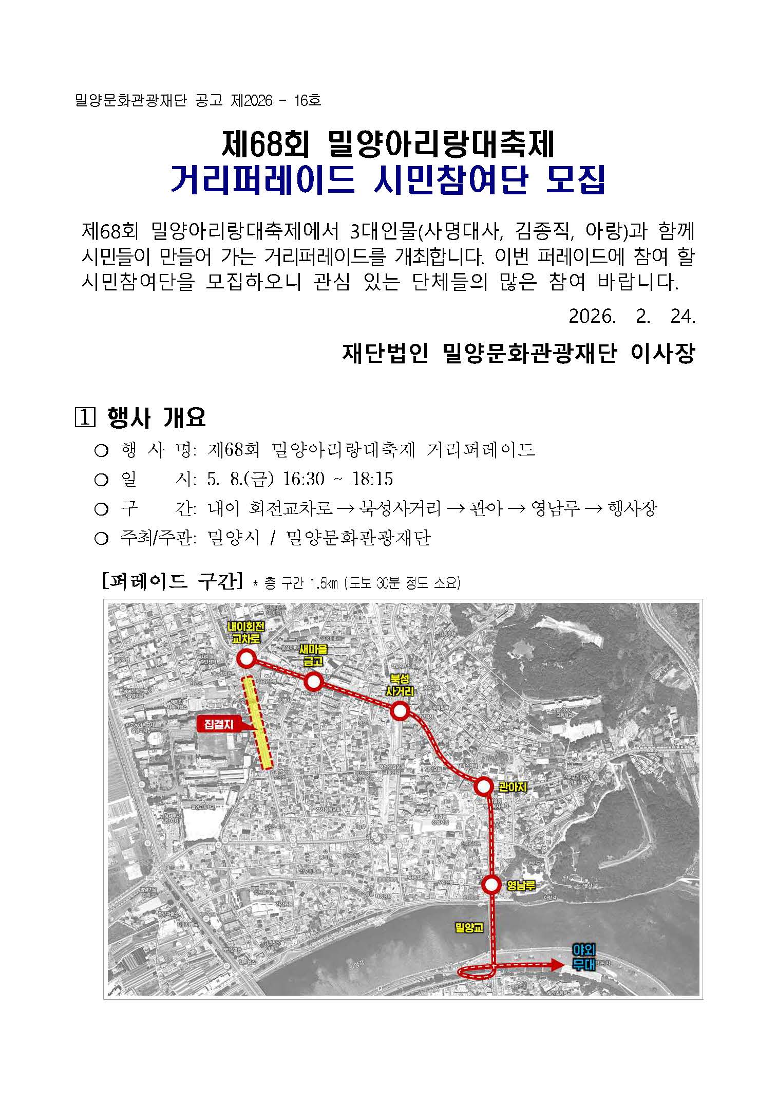 [밀양문화재단] 제68회 밀양아리랑대축제 거리퍼레이드 시민참여단 모집 공고