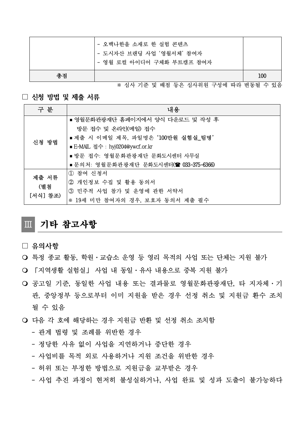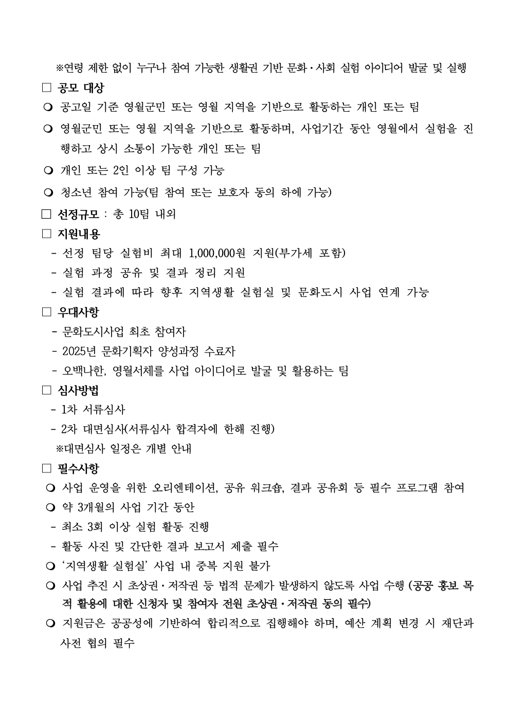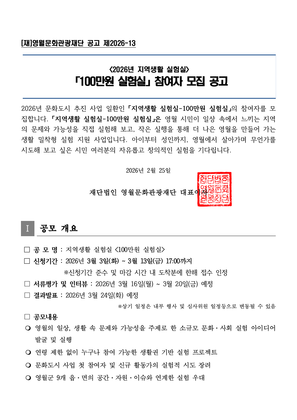 [영월문화관광재단] [문화도시 영월] 지역생활실험실 「100만원 실험실」 참여자 모집 공고