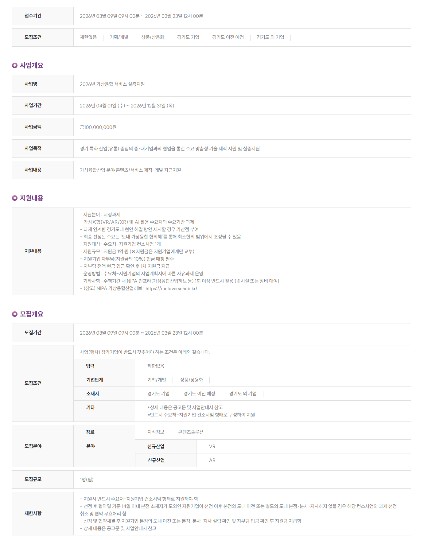 [경기콘텐츠진흥원] 2026년 가상융합 서비스 실증지원 지원기업 모집 (지정과제)