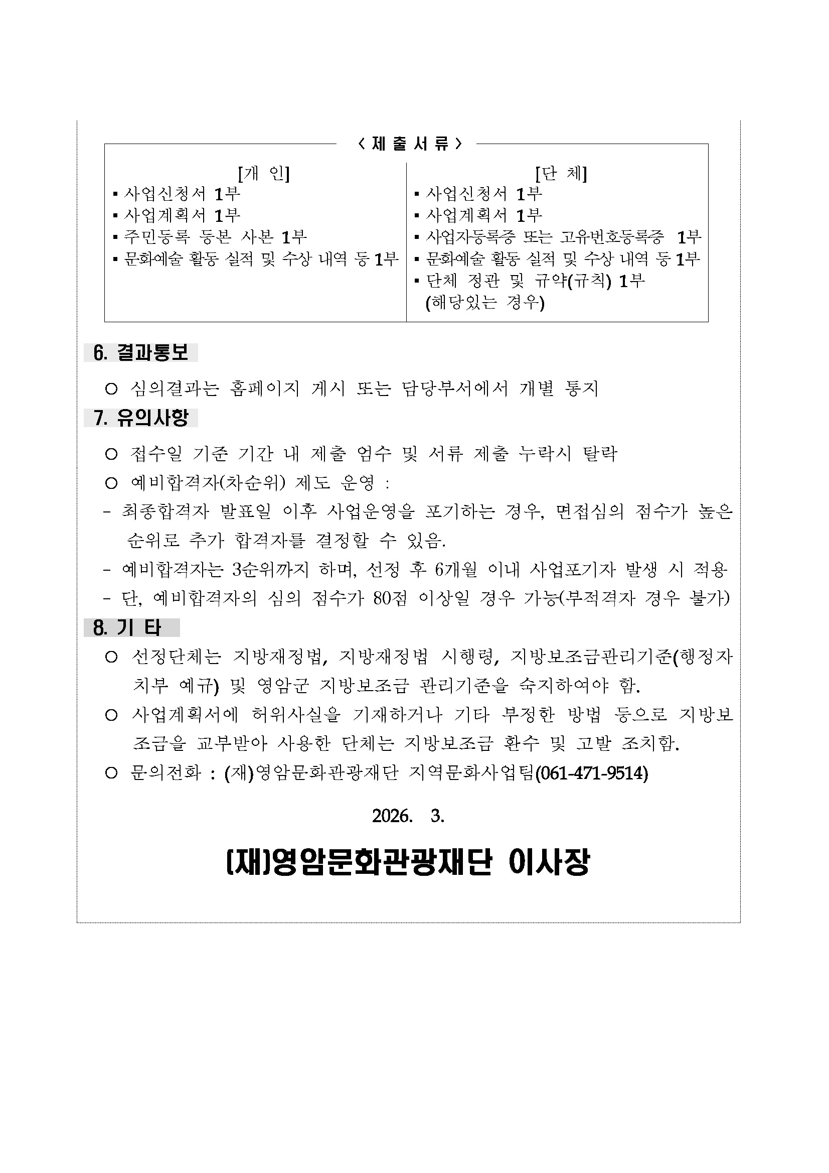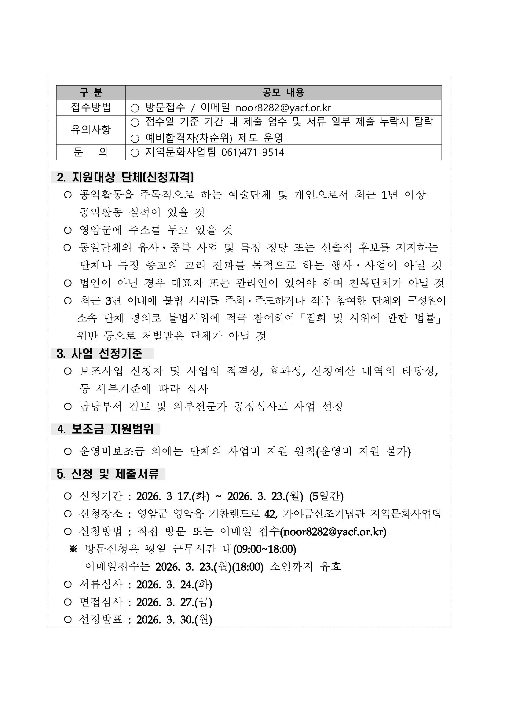[영암문화관광재단] 문화가 있는 날 행사 지원사업 모집 공고