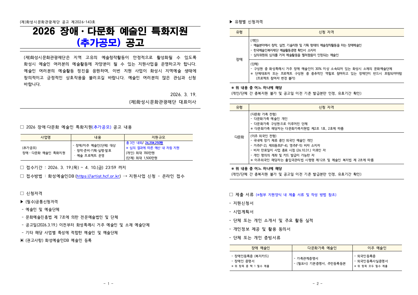 20260321104101_1. (추가공모)2026 장애·다문화 예술인 특화지원 공고문.hwp