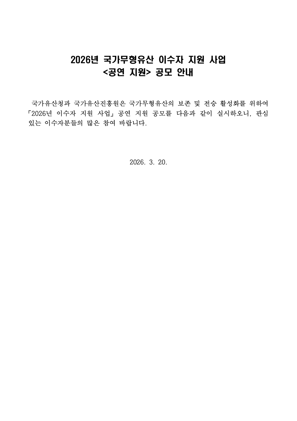 20260321112656_0. 2026년 국가무형유산 이수자 지원 사업 공연 지원 공모 안내문.hwp