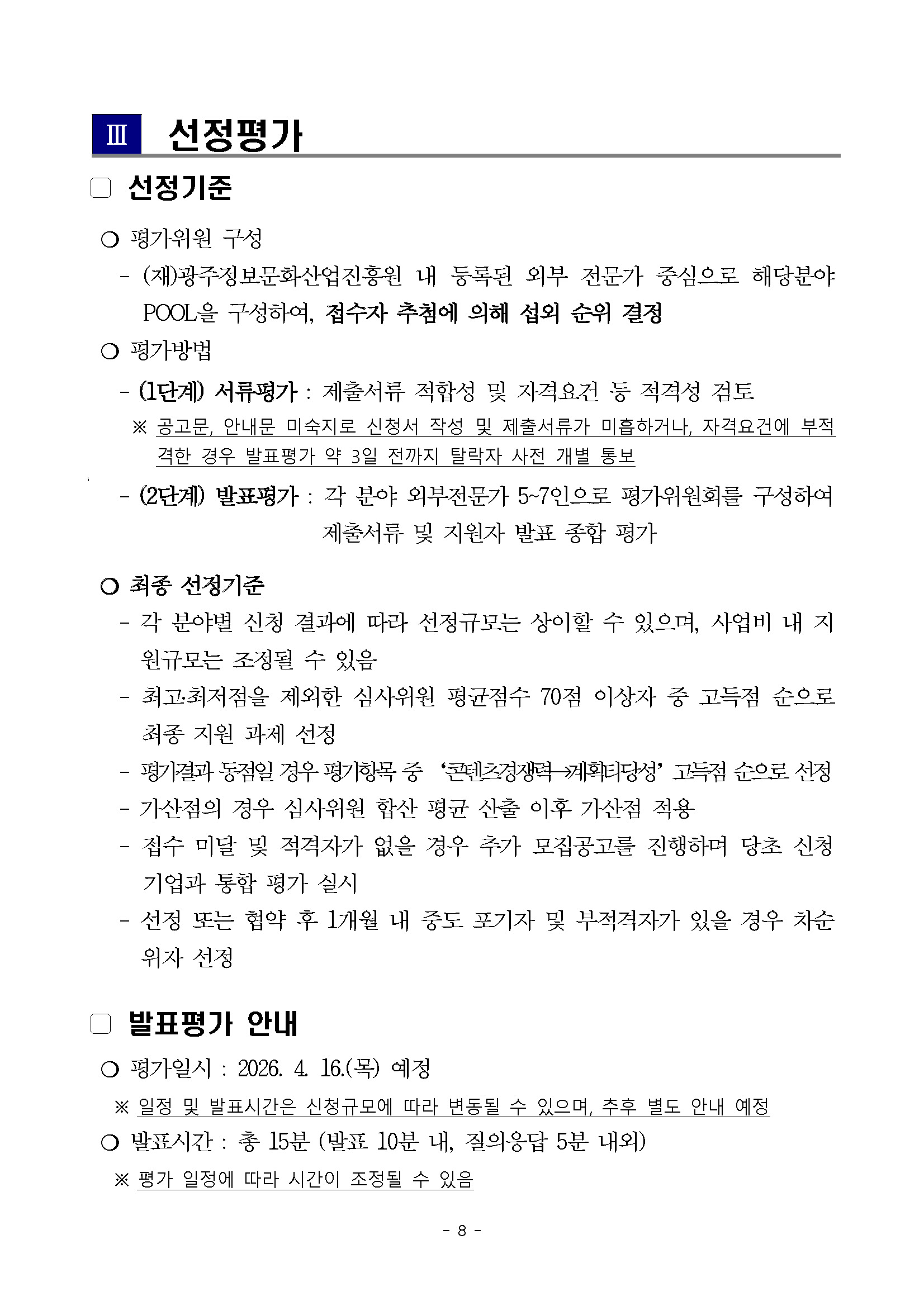 [광주정보문화산업진흥원] 『2026 기획창작스튜디오 프리비즈 콘텐츠 제작지원』 모집공고