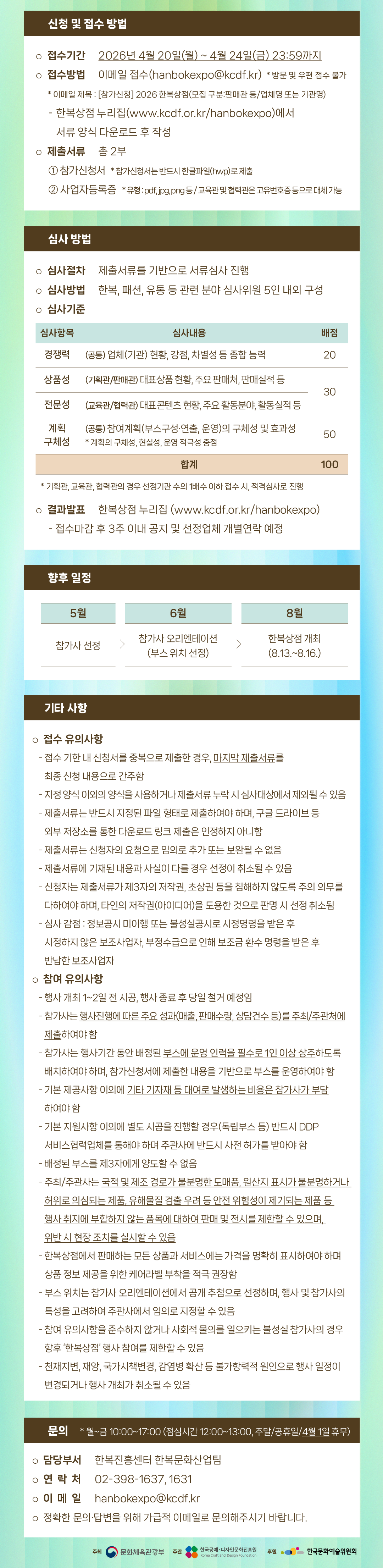 * 이메일 제목 : [참가신청] 2026 한복상점(모집 구분:판매관 등/업체명 또는 기관명)