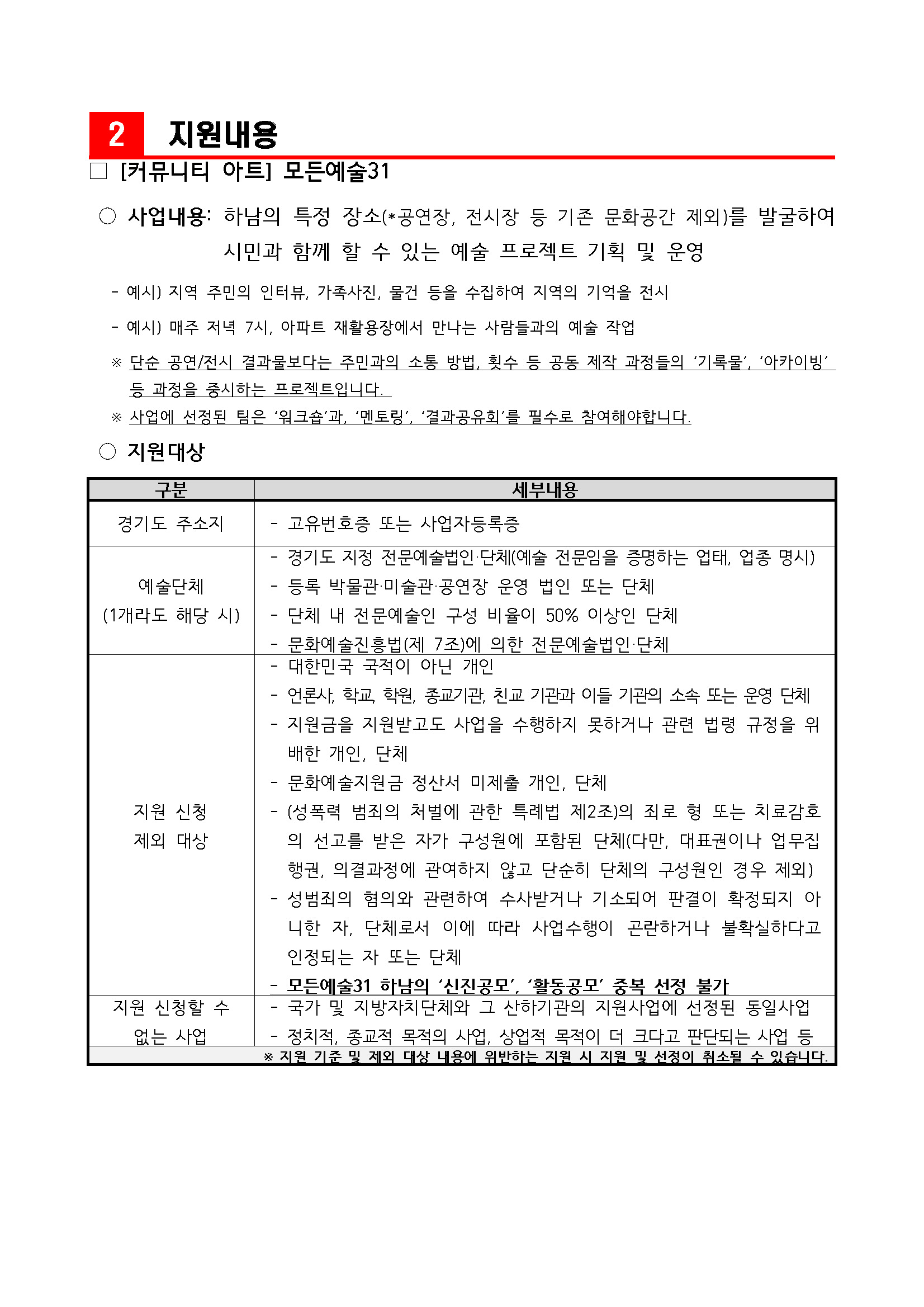 [하남문화재단] 2026 경기예술활동지원 <모든예술31_커뮤니티 아트> 사업 재공고