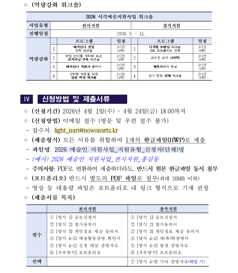 [노원문화재단] 2026 예술인 지원사업(시각예술 지원사업) 공모 (~4/24 18:00)