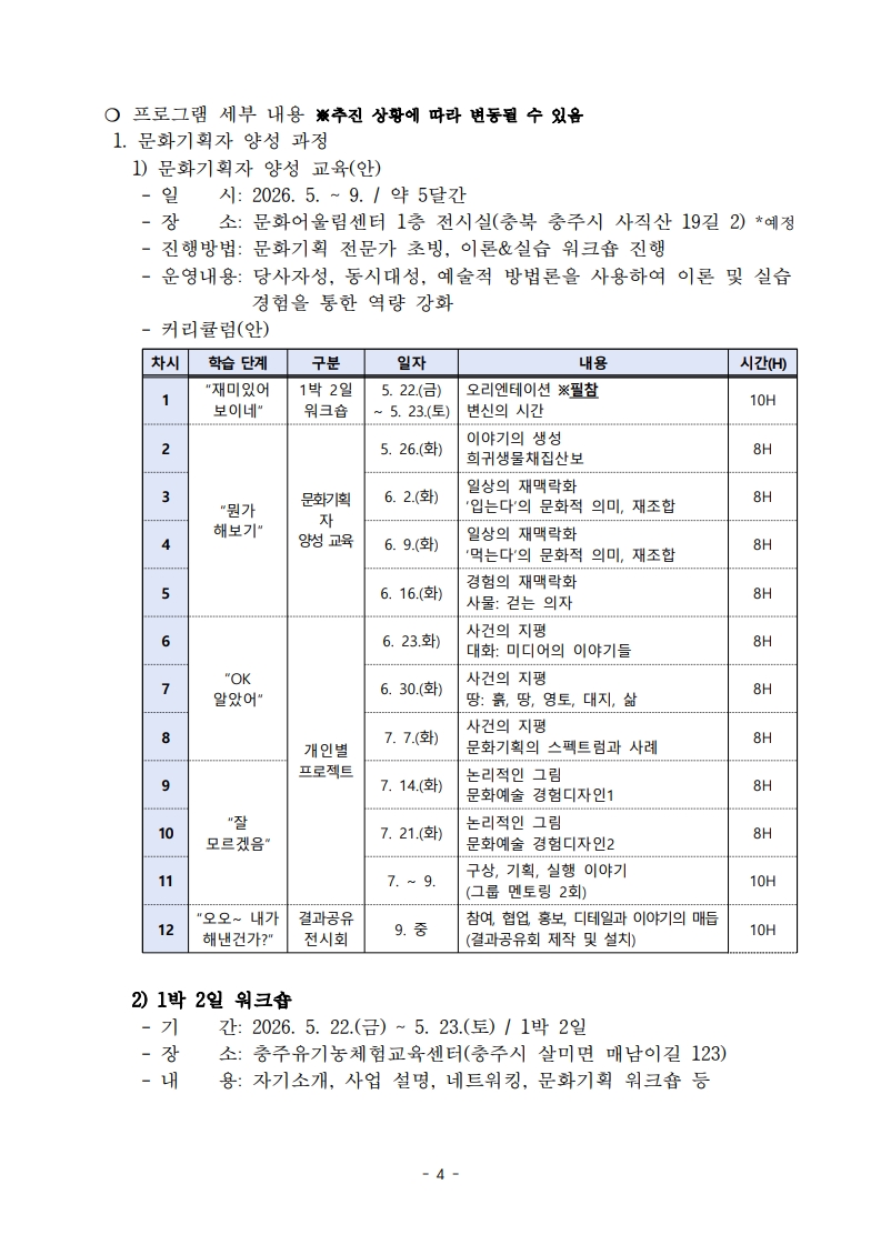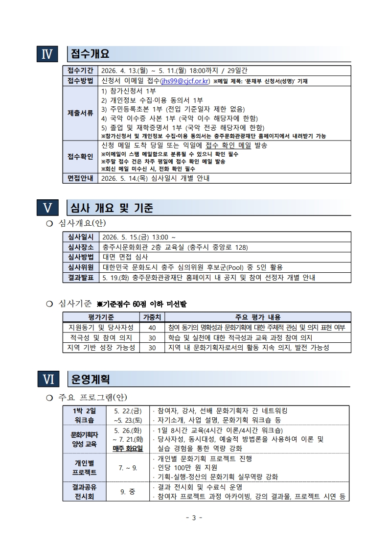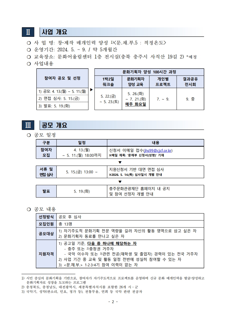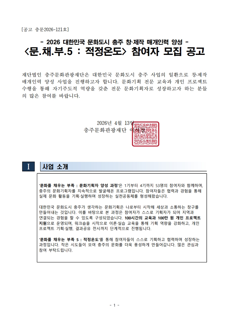 [충주중원문화재단] 2026 대한민국 문화도시 충주 창·제작 매개인력 양성 <문.채.부.5 : 적정온도> 모집 공고