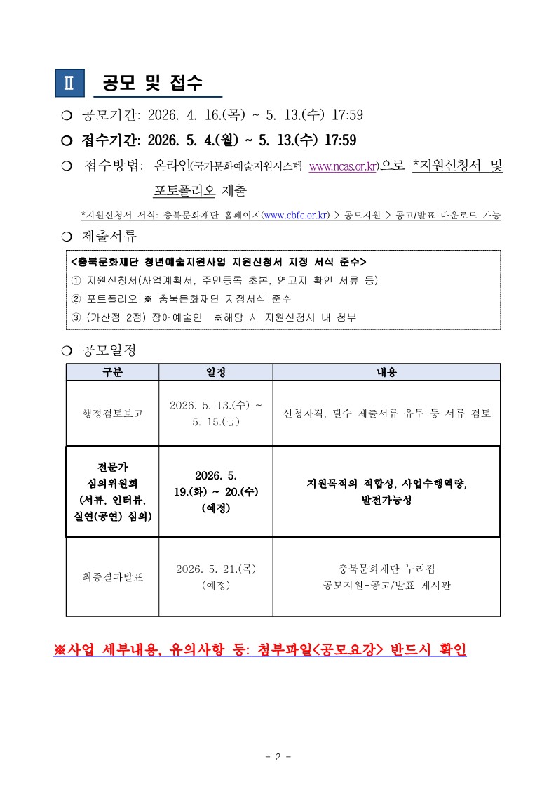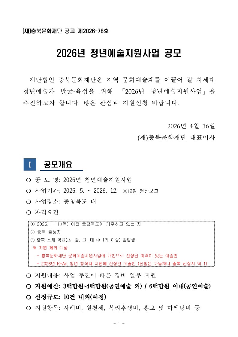 [충북문화재단] 2026년 청년예술지원사업 공모