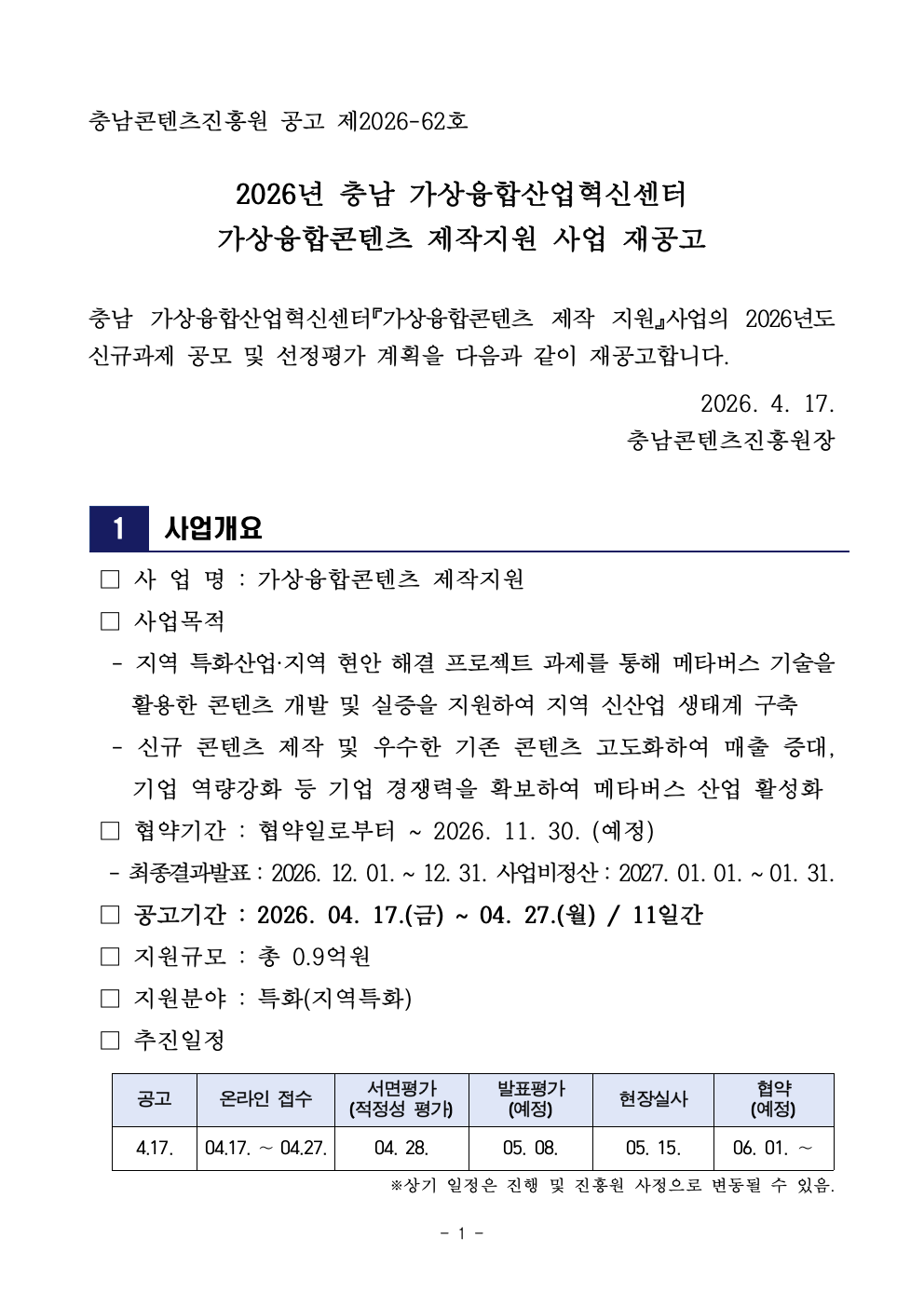 20260417091237_[붙임1]가상융합콘텐츠 지원사업 공고문재공고.hwp