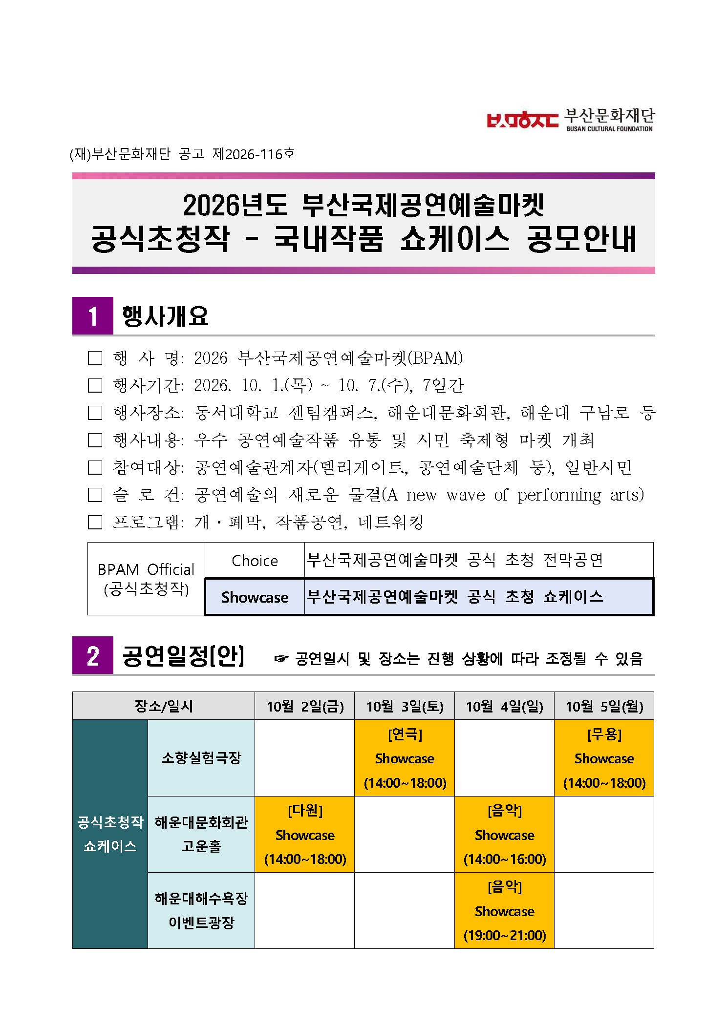 [부산문화재단] [공고] 2026년도 부산국제공연예술마켓 공식초청작 - 국내작품 쇼케이스 공모