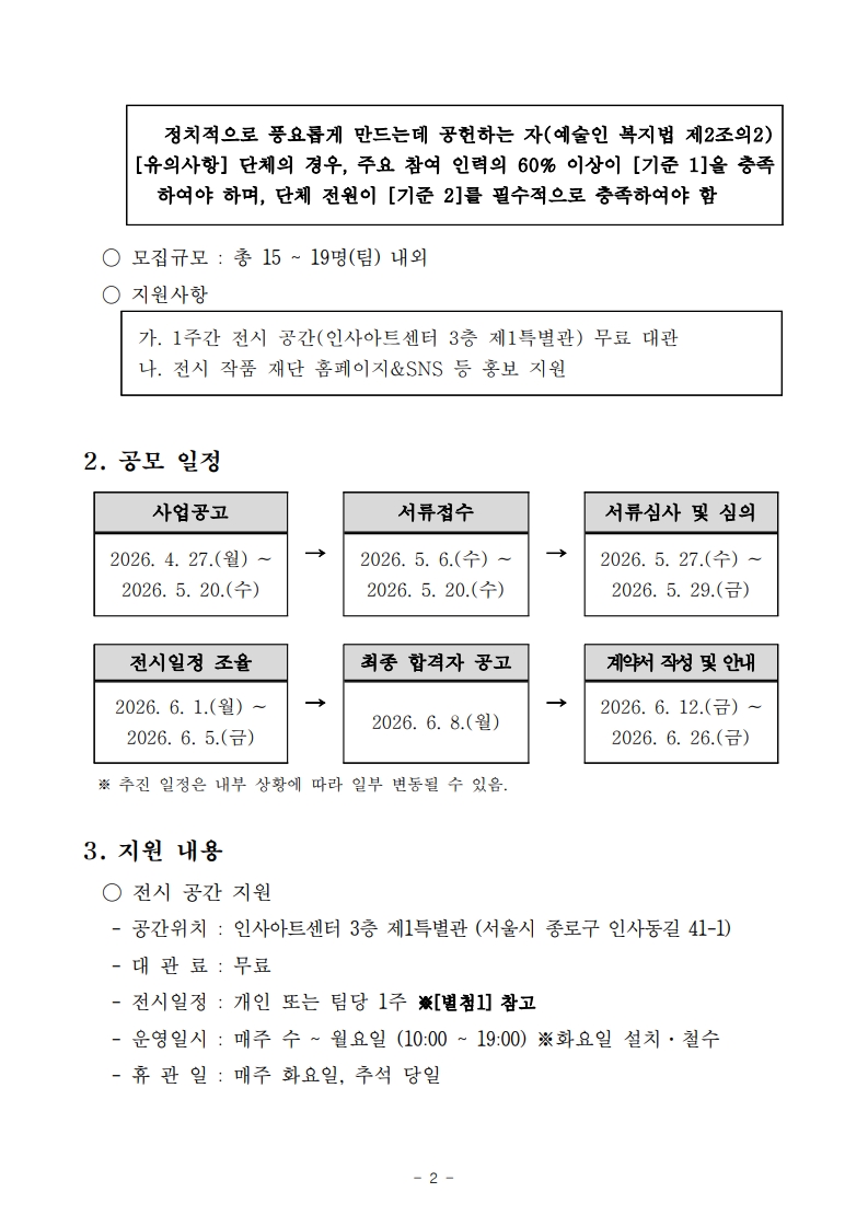 (추가공모) 「2026 장애·다문화 예술인 특화지원」 공모사업