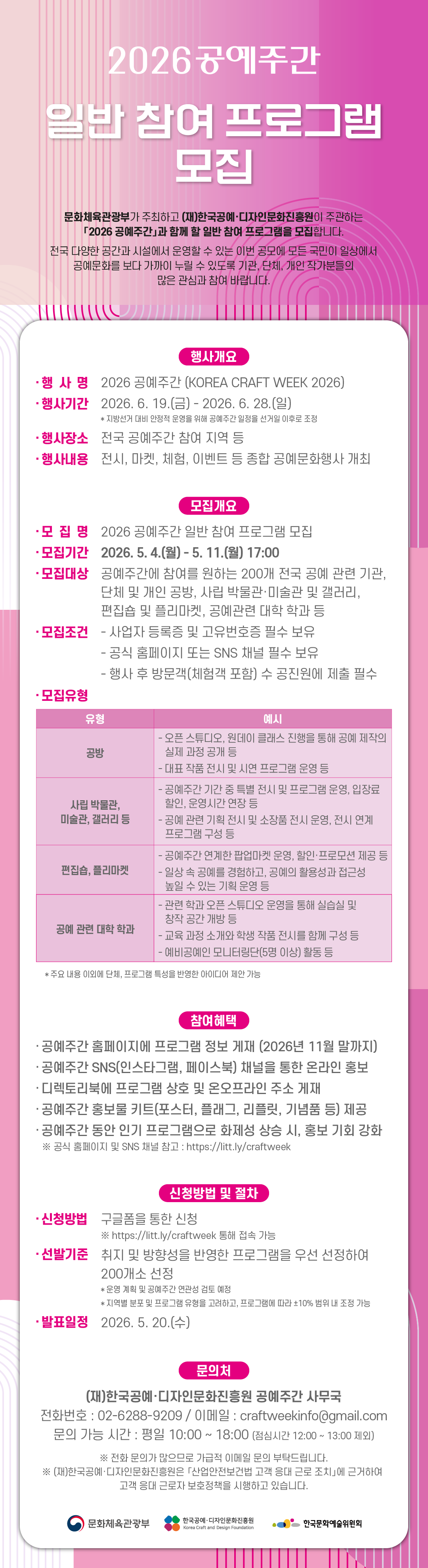 [한국공예디자인문화진흥원] 2026 공예주간 일반 참여 프로그램 모집